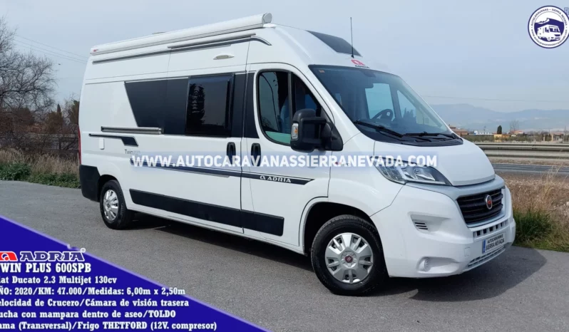 Autocaravana Camper ADRIA, modelo TWIN PLUS 600SPB. Una marca Eslovena preparada para fríos extremos.Con un diseño sofisticado, moderno y de los mejores componentes en acabados. Un vehículo muy aislado y de los más valorados por su estilo, rendimiento, comodidad, diseño y dureza en su construcción. Del año 2020, con tan solo 47.000km, prácticamente a estrenar, procedente de particular. Con un motor Fiat Ducato 2.3 Multijet 130cv y 6 velocidades uno de los motores más potente de mas bajo consumo de fiat, fiable y de mantenimiento sencillo. Dispone de 4 plazas homologadas para viajar y 2 dormir. Dispone de una cama Transversal doble muy amplia en la parte trasera, la cual podrás plegar dejando un maletero muy amplio con unas medidas: (1,00m x 1,25m x 1,65m). Ideal para gente que quiere una autocaravana muy cómoda de llevar y entrar en aparcamientos reducidos, se conduce igual que un turismo, Medidas (6,00m x 2,50m). Valor de este vehículo nuevo con extras e impuestos de matriculación aproximadamente 75.000€.