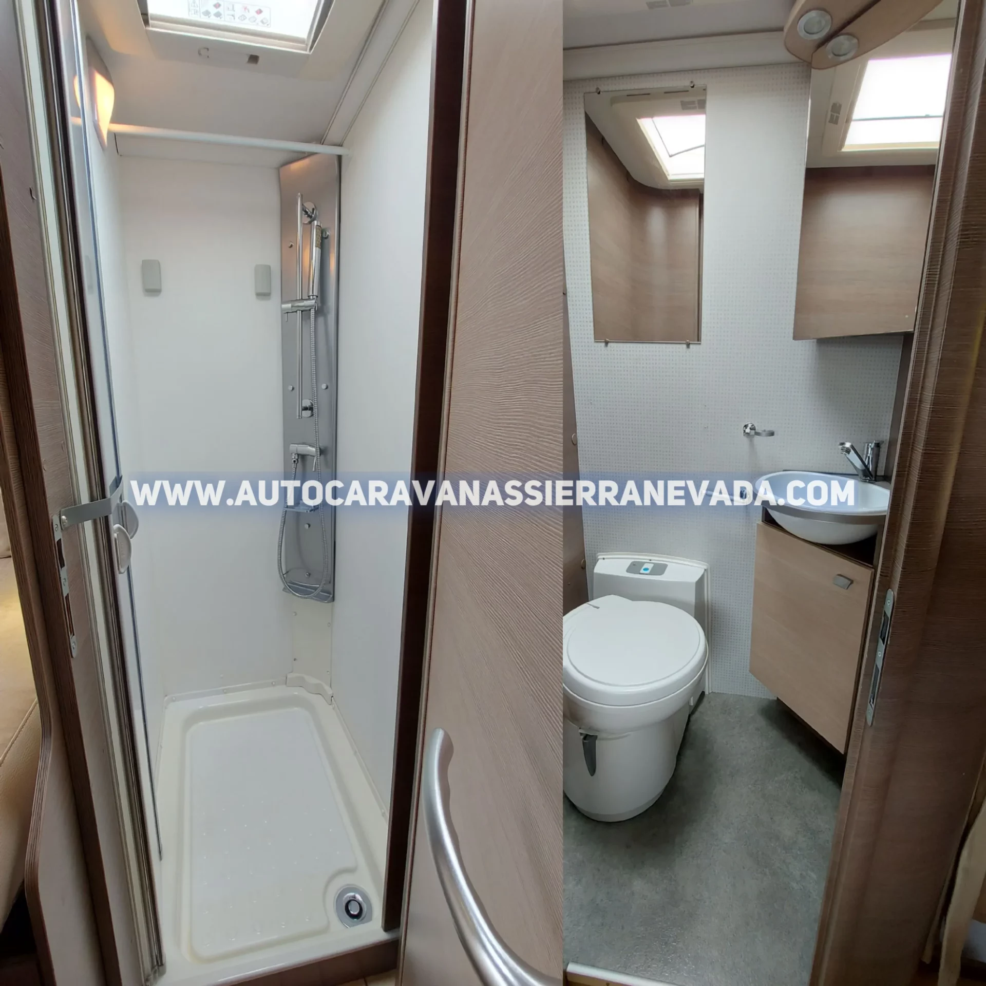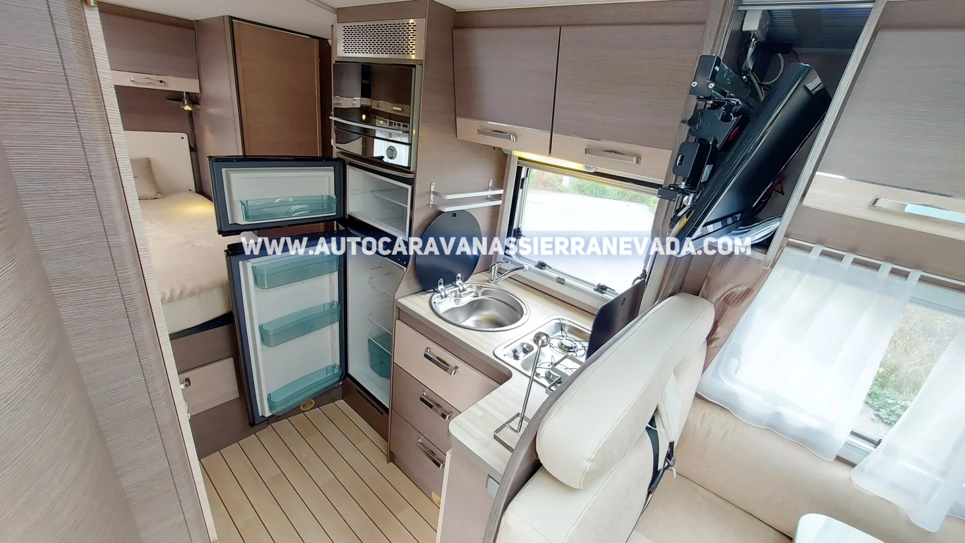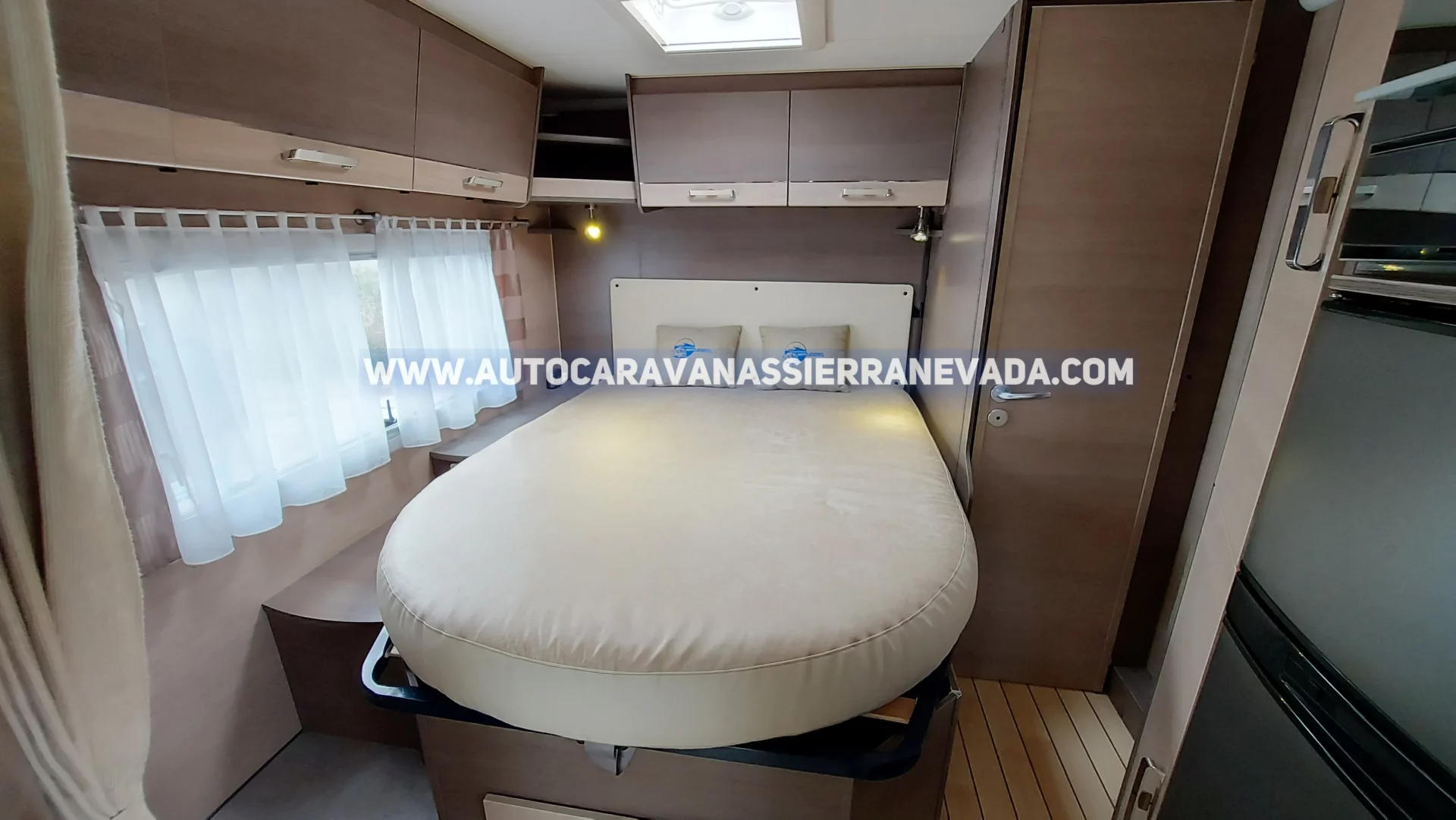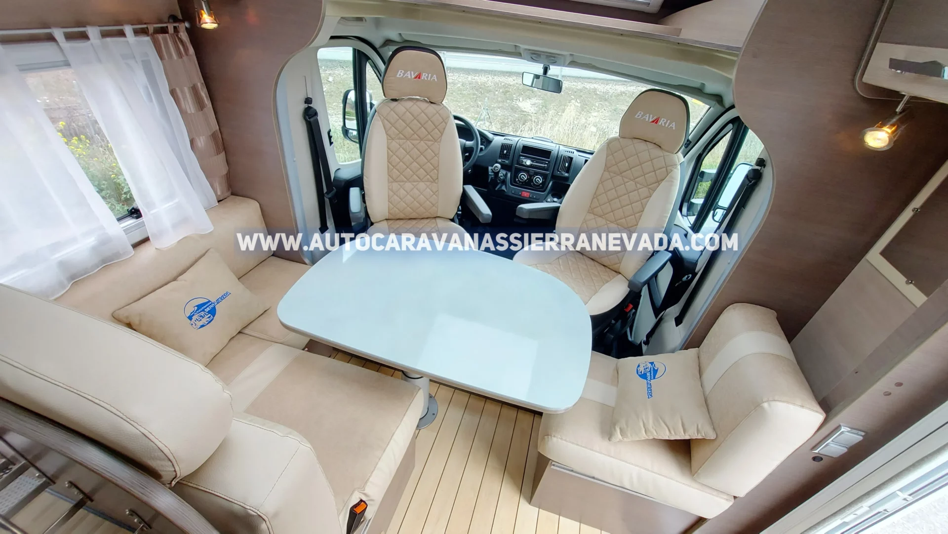 Autocaravana perfilada BAVARIA, modelo ARCTIC T69, Una de las mejores marcas del mercado. Autocaravana muy confortable, con muebles de madera de la mejor calidad, un vehículo de alta gama. Dispone de una claraboya XXL en cabina y salón muy amplias, por donde le entrara mucha claridad y dándole una sensación de amplitud y mucha ventilación. Del año 2013 y con tan solo 54.000km, procedente de particular. Con un Motor Fiat Ducato 2.3 MultiJet 130cv y seis velocidades, muy potente de fácil mantenimiento. Cuenta con 4 plazas homologadas para viajar y dormir gracias a sus siguientes camas: Isla con grandes huecos de almacenaje en la parte trasera, este tipo de cama le proporciona una gran comodidad en todos los aspectos, tanto al hacerla como acostarse por ambos lados y no molestar al otro al levantarse, además de conseguir un diseño muy selecto y cotizado en su interior y Salón Convertible. Dispone de un Garaje con doble portón, sus medidas: (2,25m x 0,90m x 0,90m). Muy bien distribuida a pesar de no tener unas medidas excesivamente grandes, ideal para gente que quiere una autocaravana muy cómoda de llevar, sus medidas: (6,90m x 2,80m).