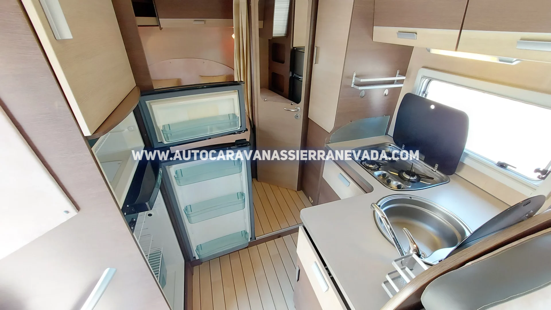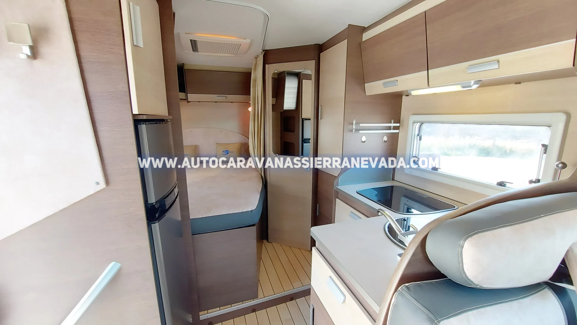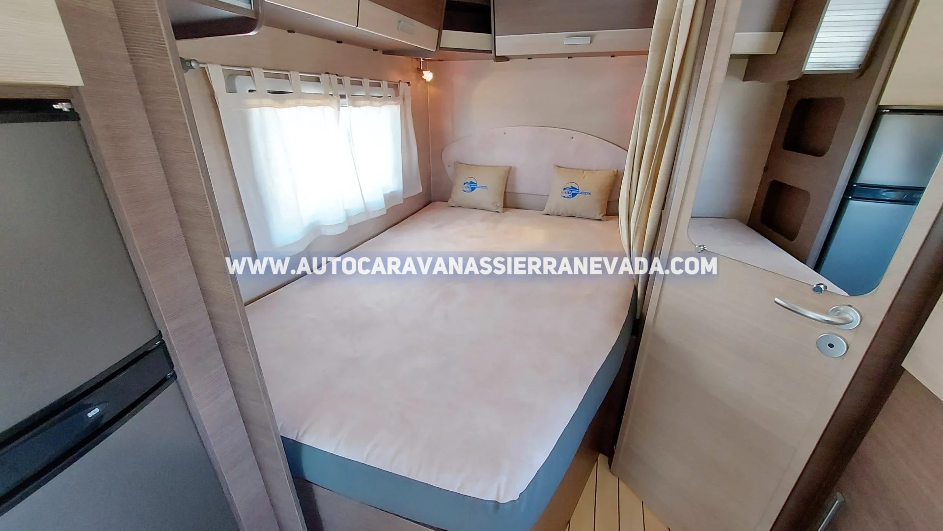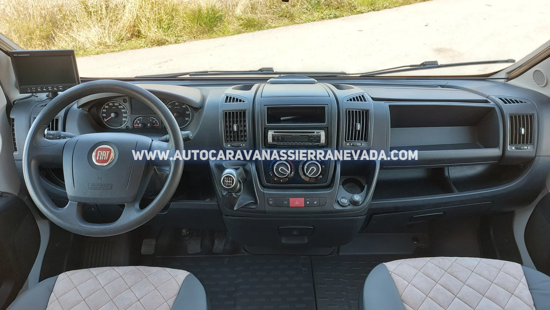 Aire acondicionado (de motor), AirBag (sólo conductor), Cierre centralizado (en cabina), Espejos eléctricos, Elevalunas eléctricos, Radio, Cámara de visión trasera, Asientos giratorios, Oscurecedores REMIS en cabina completa, Mosquiteras en ventanas, claraboyas y puerta principal, Claraboyas transparentes y Claraboya panorámica XXL en cabina, Frigo THETFORD  (220v, Gas, 12v, Auto) 149L capacidad, Ducha con mampara dentro de aseo, Batería de 100ah., Placa solar de 100w., Calefacción Truma Combi, Tv 12v. (TDT-HDMI-USB-DVD) + Antena TDT, Escalón de doble peldaño integrado, Toldo lateral de 4m., Portabicis para 2, Neumaticos reforzados marca MICHELIN especial camper.