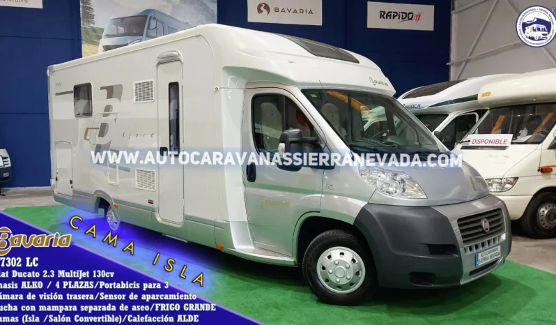 Autocaravana perfilada BAVARIA, modelo T7302 LC, Una de las mejores marcas del mercado. Autocaravana muy confortable, con muebles de madera de la mejor calidad. Dispone de una claraboya XXL en la cabina muy amplia, por donde le entrara mucha claridad y dándole una sensación de amplitud y mucha ventilación. Del año 2011 y con tan solo 91.000km, muy cuidada prácticamente a estrenar, procedente de particular con toda la documentación que los certifica. Con Chasis ALKO con doble suelo y *Suspensión con barras de torsión (mucho mejor que la suspensión de ballestas), y mucho sitio de almacenamiento en el doble suelo. Con un Motor Fiat Ducato 2.3 MultiJet 130cv y seis velocidades, muy potente  de fácil mantenimiento. La calefacción y el agua caliente funcionan mediante  caldera ALDE, insonora y de radiadores como en casa, para calentar el habitáculo mucho más rápido. Cuenta con 4 plazas homologadas para y 3 dormir viajar gracias a sus siguientes camas: Isla con grandes huecos de almacenaje en la parte trasera, este tipo de cama le proporciona una gran comodidad en todos los aspectos, tanto al hacerla como acostarse por ambos lados y no molestar al otro al levantarse, además de conseguir un diseño muy selecto y cotizado en su interior y Salón Convertible. Dispone de un Garaje  muy espacioso con unas medidas: (1,90m x 1,00m x 1,05m). Una autocaravana muy amplia, perfecta para hacer viajes de larga estancia y vivir en ella, Medidas: (7,40m x 2,90m).