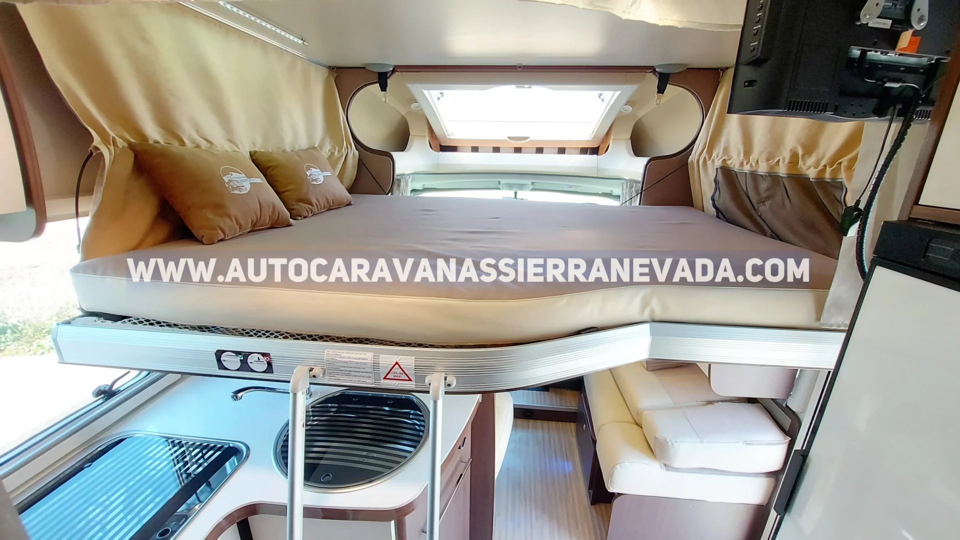 Aire acondicionado (de motor), AirBag (conductor y copiloto), Velocidad de Crucero, Cierre centralizado(en cabina), Espejos eléctricos, Elevalunas eléctricos, Radio (CD-USB-MP3), Cámara de visión trasera, Asientos giratorios, Oscurecedores REMIS en cabina completa, Mosquiteras en ventanas, claraboyas y puerta principal, Claraboya panorámica XXL en cabina, Frigo THETFORD  (220v, Gas, 12v, Auto) 141L capacidad, Ducha con mampara separada de aseo, Batería de 95ah., Placa solar de 100w., Calefacción WEBASTO a gasoil, Tv 12v. (TDT-HDMI-USB), Escalón eléctrico de aluminio, Toldo FIAMMA de 4m., 1 Cierre de seguridad (en puerta principal), Neumáticos reforzados especial camper.
