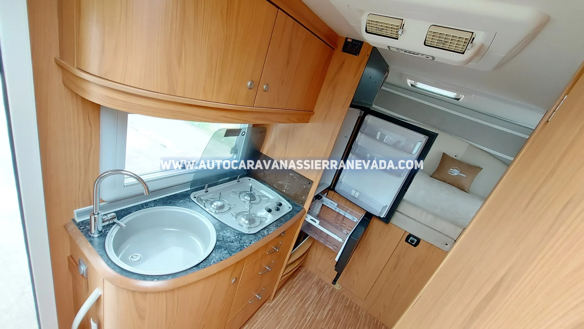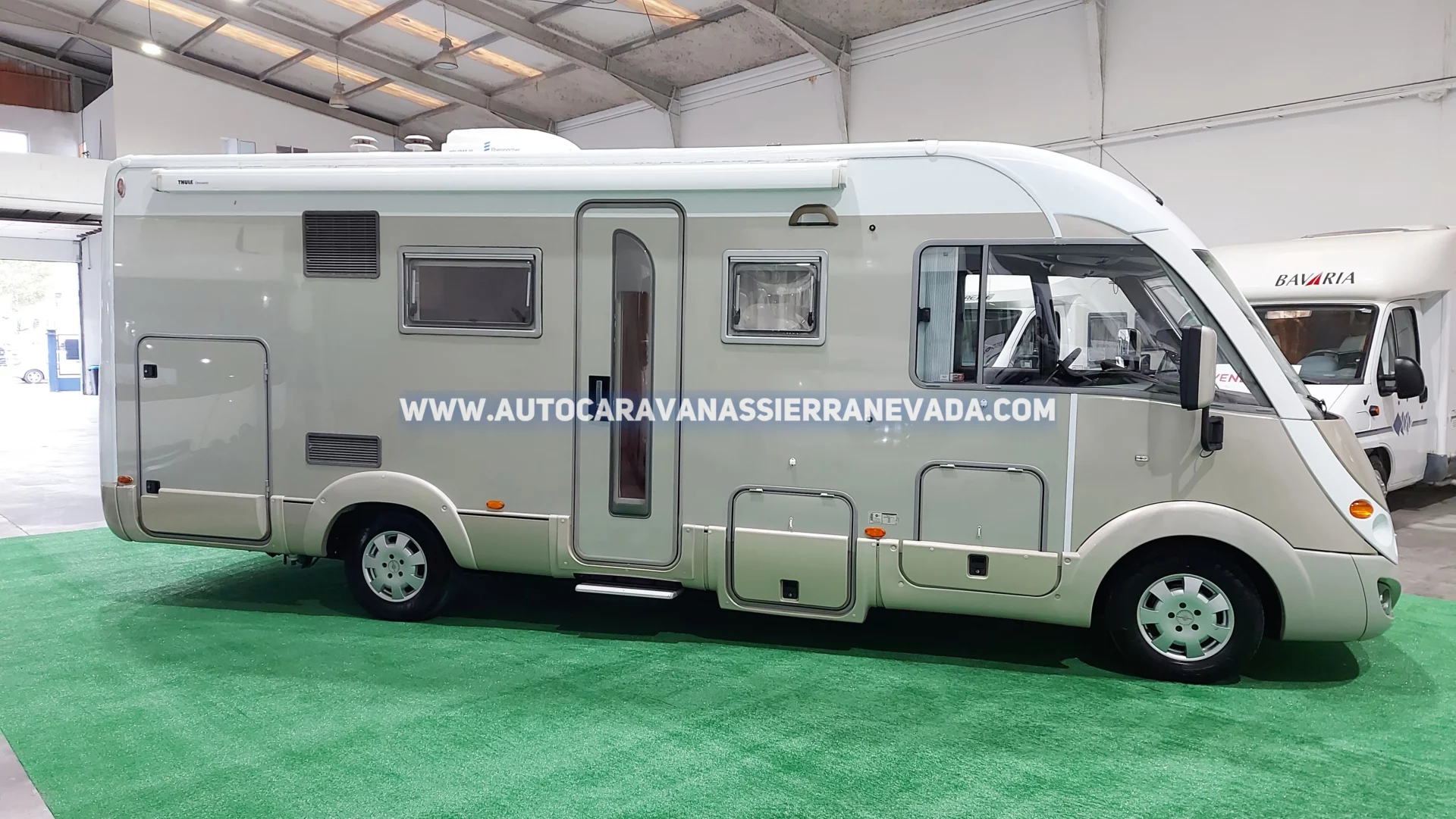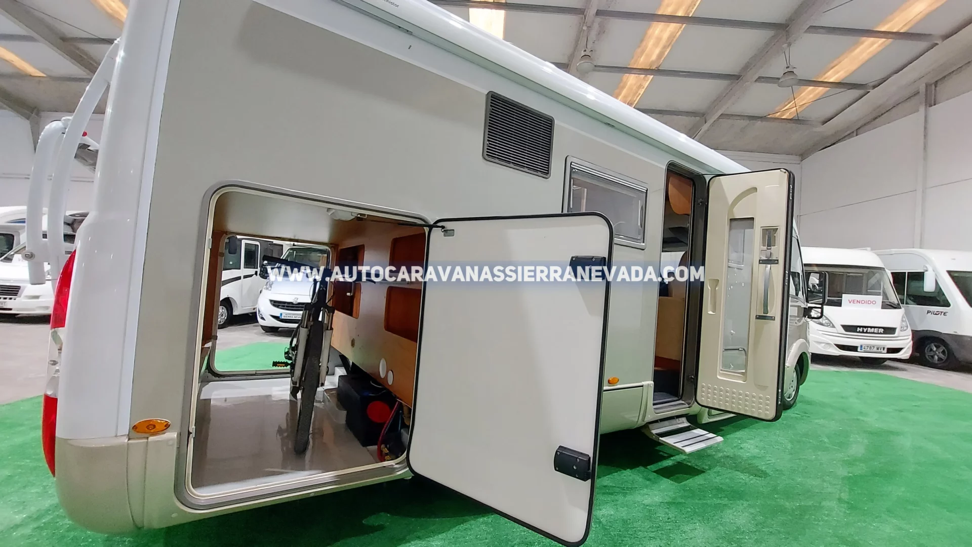 y de gran calidad nos trae esta gran vehículo, estando siempre a la altura de otras grandes casas, Hymer, Niesmann, Laika entre otras. Con un motor muy potente, duro y de fácil mantenimiento Fiat Ducato 3.0 MultiJet 160cv, 6 Velocidades y lo mejor de todo, con Cadena de distribución. Del año 2007 y con 129.000km. demostrables con documentación que los acredita. *Chasis ALKO con doble suelo y *Suspensión con barras de torsión (mucho mejor que la suspensión de ballestas) y mucho sitio de almacenamiento en el doble suelo. Homologada en documentación con 4 plazas para viajar. Dispone de cama colgante sobre la cabina y cama Transversal en la parte trasera, al disponer de esta cama, tendremos un garaje gigante donde podrá llevar bicicletas, con unas medidas;(2,10largo x 1,20ancho x 1,24 alto).Muy espaciosa en su interior, debido a sus medidas, esta increíble autocaravana mide (7,20m de largo x 2,80m. de alto) y se conduce con el carnet B, el normal.