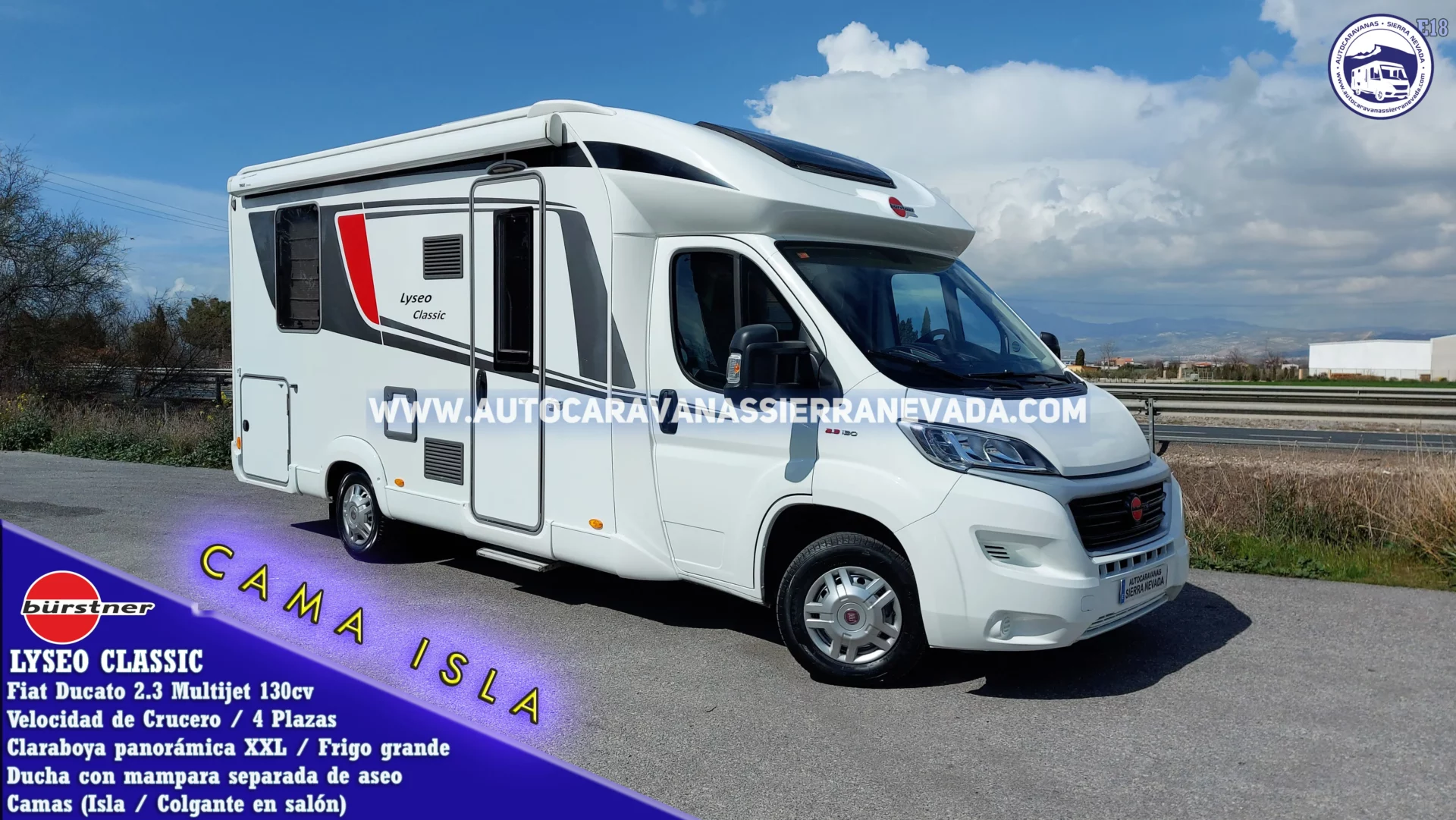 Autocaravana Perfilada  BURSTNER, modelo Lyseo Classic. Una de las marcas más valoradas por su diseño, dureza en su construcción y muebles de alta calidad, a la altura de otras grandes casas, Hymer, Niesmann, entre otras. Del año 2017, procedente de particular, no proviene de alquiler, mucho mejor que comprarla nueva ya que el impuesto de matriculación (muy elevado) y el IVA está incluido en este precio, con tan solo 93.000km. Dispone de una claraboya panorámica en cabina muy amplia, por donde le entra mucha claridad dándole una sensación de amplitud y mucha ventilación. Con motor Fiat Ducato 2.3 MultiJet 130cv y seis velocidades, un motor muy duro y fácil de mantener, más que probado en este tipo de vehículos. Con 4 plazas homologadas para viajar y dormir gracias a sus camas: Cama Isla, el modelo de cama más solicitado por todas las ventajas y comodidades que conlleva y Colgante eléctrica en salón. Autocaravana super espaciosa, ideal para usar como vivienda o viajes largos., Medidas: (7,00m x 3,10m). Con un amplio maletero doble portón con unas medidas: (2,15m x 1,00m x 0,90m).