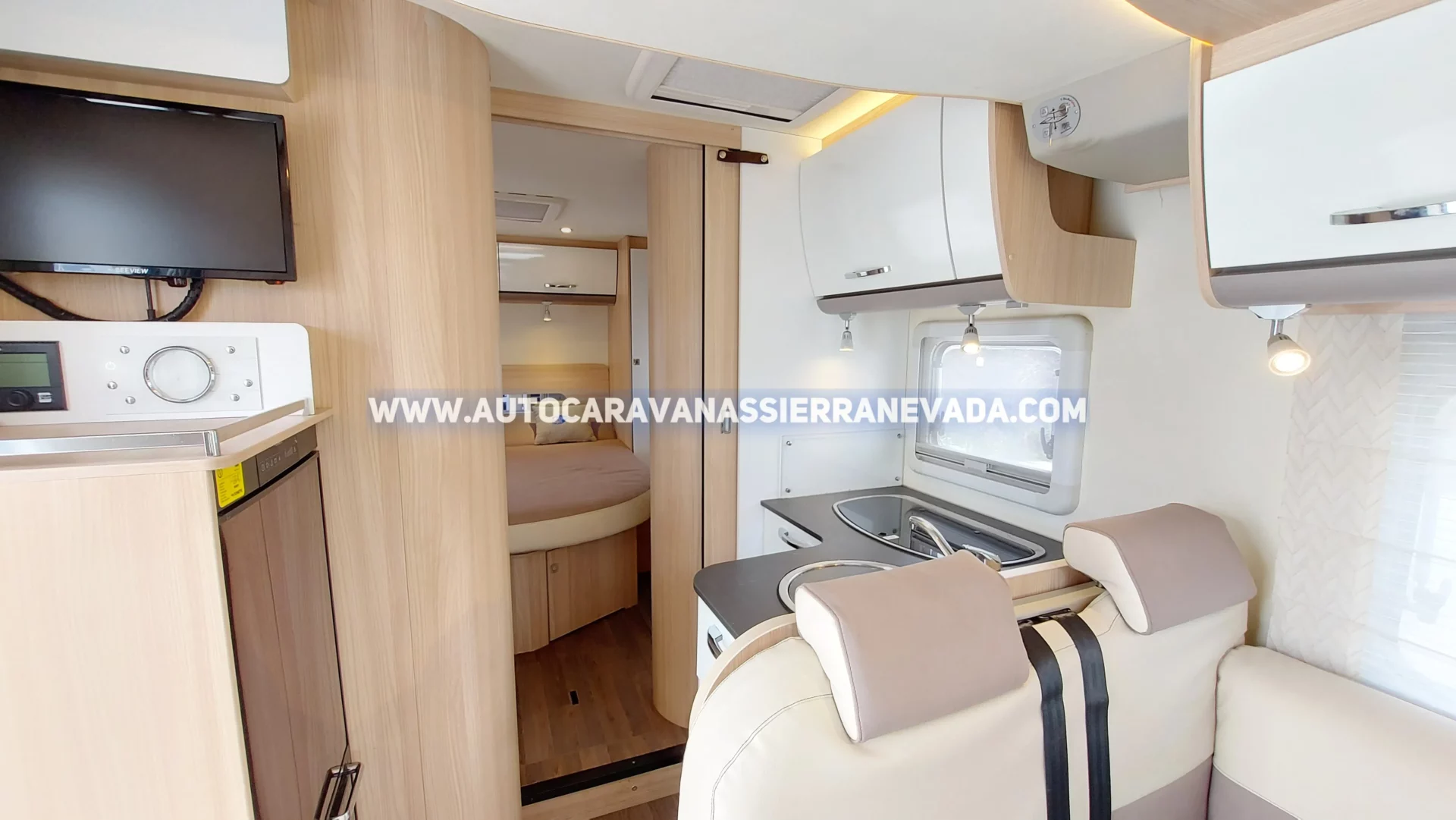 Aire acondicionado (de motor), AirBag (conductor y copiloto), Velocidad de Crucero, Cierre centralizado, Elevalunas eléctricos, Espejos eléctricos, Radio (2DIN-CD- USB-BT), Asientos giratorios, Oscurecedores REMIS (en luna delantera), Mosquiteras en ventanas, claraboyas y en puerta principal, Claraboyas transparentes y Claraboya panorámica XXL en cabina, Frigo DOMETIC  (220v, Gas, 12v, Auto) 151L capacidad, Ducha con mampara separada de aseo, Batería de 95ah., Placa solar de 100w., Calefacción Truma Inet Ready, Antena TDT, Escalón eléctrico de aluminio, Toldo THULE de 4m., 2 Cierres de seguridad (puertas de cabina), Neumáticos reforzados especial camper.