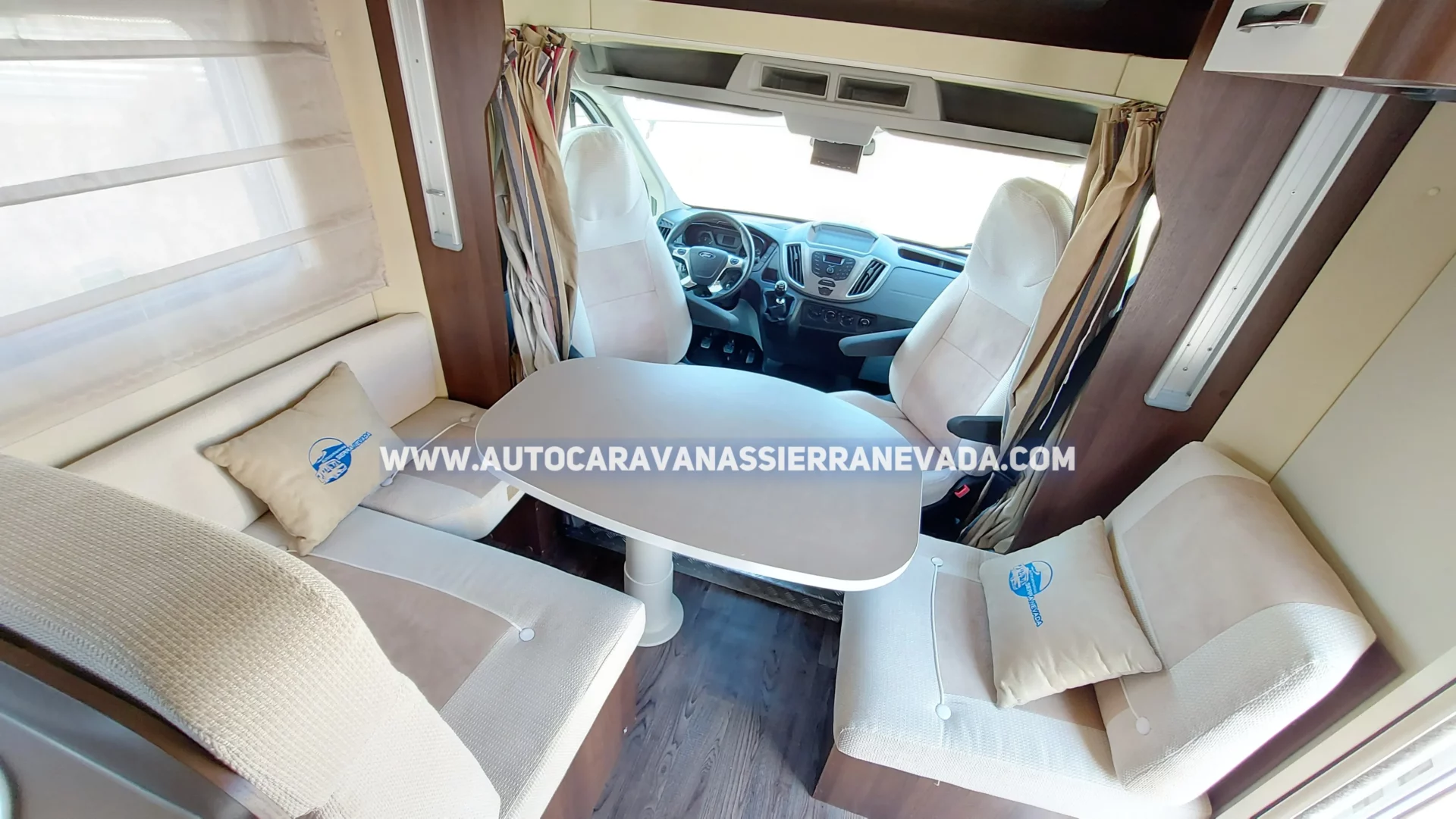 Aire acondicionado (de motor), AirBags (conductor y copiloto), Cierre centralizado(solo en cabina), Velocidad de crucero, Espejos eléctricos, Elevalunas eléctricos, S.R.S (Supplemental Restrain System), Cámara de visión trasera, Radio Original Ford, Asientos giratorios, Mosquiteras en ventanas, claraboyas y puerta principal, Claraboyas transparentes, Frigo THETFORD(220v, Gas, 12v, Auto) 141L capacidad, Ducha con mampara separada de aseo, Batería de 100ah., Placa solar de 100w., Calefacción Tuma Combi, Tv 12v., Escalón de doble peldaño integrado, Toldo DOMETIC de 3m., Portabicis para 3, Neumáticos reforzados marca CONTINENTAL especial camper.
