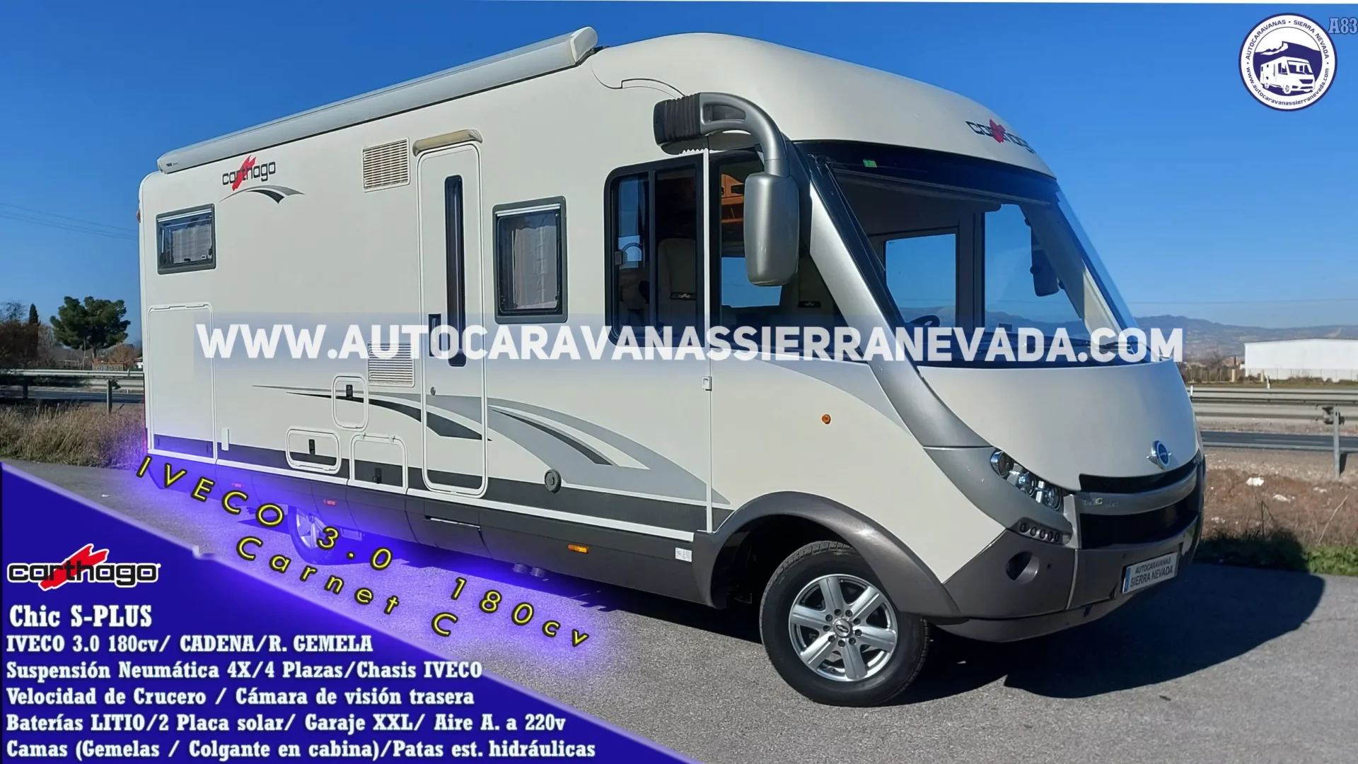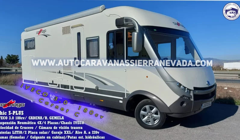 Autocaravana integral CARTHAGO, modelo Chic S-PLUS. Fabricación Alemana especialista en móldelos integrales de altisima calidad, posicionándose en uno de los fabricantes de la clase alta del mercado Europeo. Una de las mejores marcas del mercado, especialistas en acabados de gran estilo, comodidad, funcionamiento y durabilidad. También gracias a su gran espacio en el interior del habitúalo será ideal para gente alta. Cristales delanteros con doble acristalamiento y persiana en cabina, le proporcionara un mayor aislamiento Del año 2011 y con tan solo99.000km. El punto fuerte lo tenemos en su Motor IVECO 3.0 180cv, muy potente, fiable, de fácil mantenimiento y con la ventaja de llevar Cadena de distribución (no correa). AUTOMATICA. Este vehículo consta de CHASIS IVECO con sistema de suspensión neumática con autoinflado desde cabina. La calefacción y el agua caliente funcionan mediante la caldera ALDE, insonora y de radiadores como en casa. También contamos con un de doble acristalamiento en la parte de (piloto y copiloto) que le proporcionara un mayor aislamiento. Un vehículo con muchísima estabilidad gracias a sus ruedas gemelas traseras, con ballestas reforzadas y amortiguador cruzado, esto también incrementa la seguridad en caso de un reventón al disponer de sus 4 ruedas. Cuenta con 4 plazashomologadas para viajar y con 2 camas grandes dobles, Camas Gemelas detrás con opción a transformarla en una cama trasversal gigante donde podrán dormir incluso tres personas muy cómodamente + Colgante sobre cabina ambas muy amplias. ESTE VEHÍCULO SE CONDUCE CON EL CARNET C. Su M.M.A 5.400kg una gran cualidad que es la gran capacidad de carga. Dispone de un Garaje GIGANTE con doble acceso sus medidas; (2,05m x 1,25m x 1,45m). Las medidas de esta fantástica autocaravana son: (7,80m x 3,10m) ideal para usar como vivienda o para grandes familias y viajes largos. Valor de este vehículo nuevo con extras e impuestos de matriculación aproximadamente 180.000€. Consta Aspiradora DOMETIC incorporada. Este vehículo dispone de patas estabilizadoras hidráulicas autonivelantes, este sistema nos permite nivelar la autocaravana de forma automática y con mucha facilidad. Con esto nos olvidaremos de los calzos. No solamente sirven para nivelar la autocaravana sino que también te ayuda por ejemplo a poner las cadenas de nieve subiendo solamente las patas delanteras.