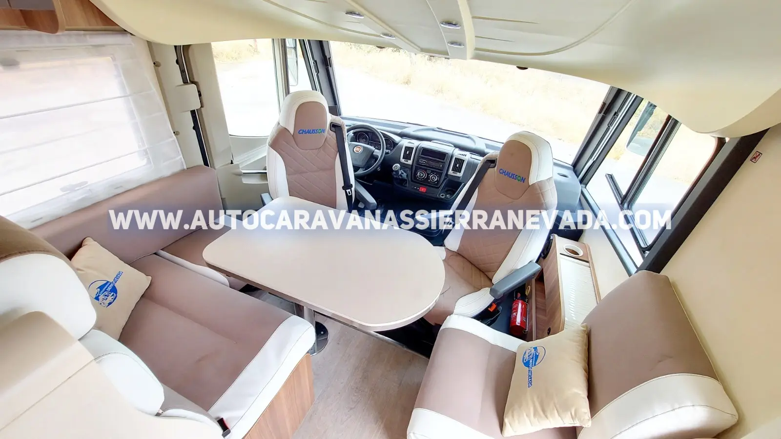 Autocaravana Integral CHAUSSON, modelo EXALTIS 6028.un modelo exclusivo, de muy alta gama y con unos materiales y acabados dignos de este modelo .Una de las marcas más valoradas del mercado. Muy cuidada, procedente de particular. Con un motor Fiat Ducato 2.3 MultiJet 130cv / 6 Velocidades, muy potente, duro, robusto y de bajo consumo. Del año 2016 con tan solo 48.000km. Dispone de 4 plazas homologadas en documentación para viajar y dormir. Sus camas: Cama Isla en la parte trasera con un gran canapé para almacenar. Uno de los modelo más selecto, ideal para parejas, la facilidad y comodidad a la hora de hacerla y levantarse de ella, hace que sea el modelo de cama más demandado por nuestros clientes + Colgante en cabina, ambas muy amplias. Dispone de dos televisiones en la zona del salón y en el dormitorio. Ideal para gente que quiere una autocaravana muy cómoda de llevar y entrar en aparcamientos reducidos ya que no supera los 7 metros: (6,90m x 2,90m). Con un Maletero Trasero doble portón muy espacioso con unas medidas:(2,15m x 1,00m x 1,10m).