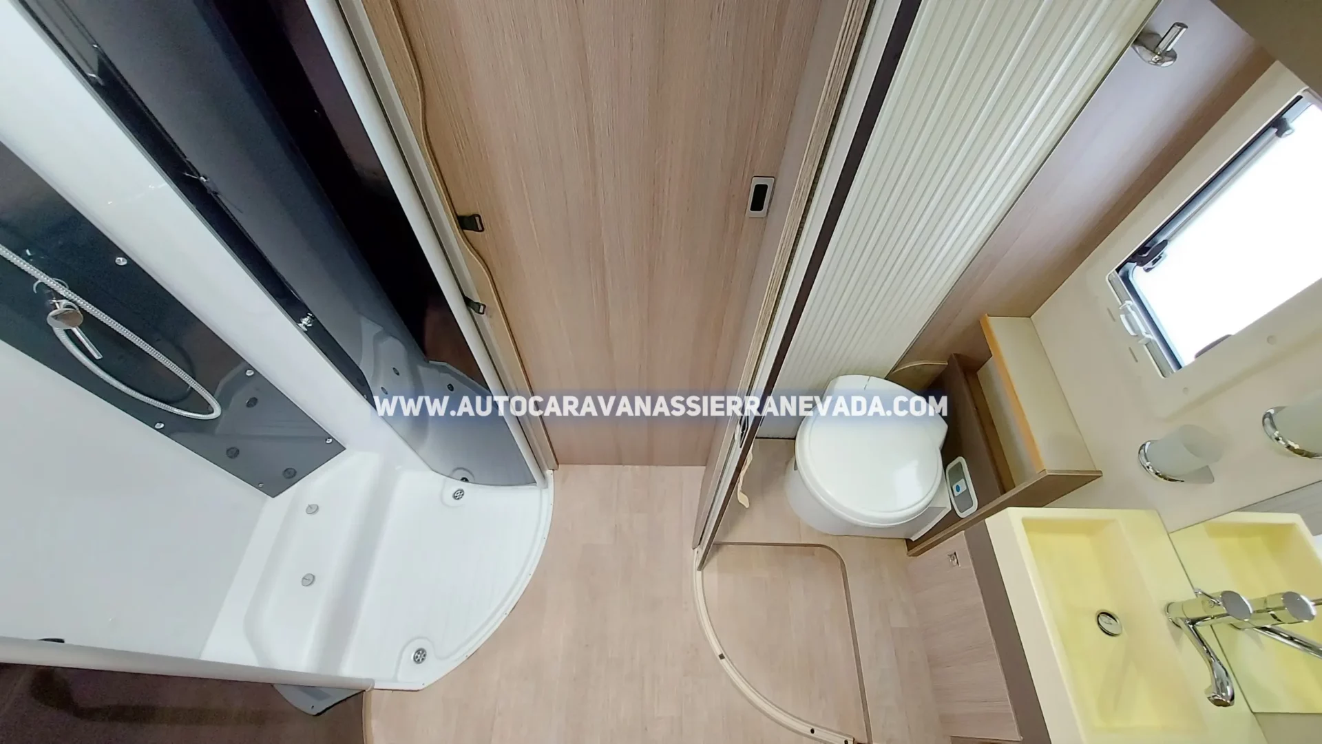 Aire acondicionado (de motor), AirBag (conductor y copiloto),Velocidad de Crucero en Volante, Cierre centralizado(en cabina), Espejos eléctricos, Elevalunas eléctricos, Radio (USB-BT-AUX), Cámara de visión trasera, Asientos giratorios, Mosquiteras en ventanas y claraboyas , Claraboyas transparentes y Claraboya panorámica xxl en cabina, Frigo THETFORD  (220v, Gas, 12v, Auto) 175L capacidad, Ducha con mampara separada de aseo, Batería de 100ah., Placa solar de 100w., Calefacción Truma Inet Ready a gasoil,  2 Tv 12v. (TDT-HDMI-USB-DVD), Escalón de doble peldaño integrado, Toldo THULE de 4m., Portabicis para 2, Neumáticos reforzados especial camper