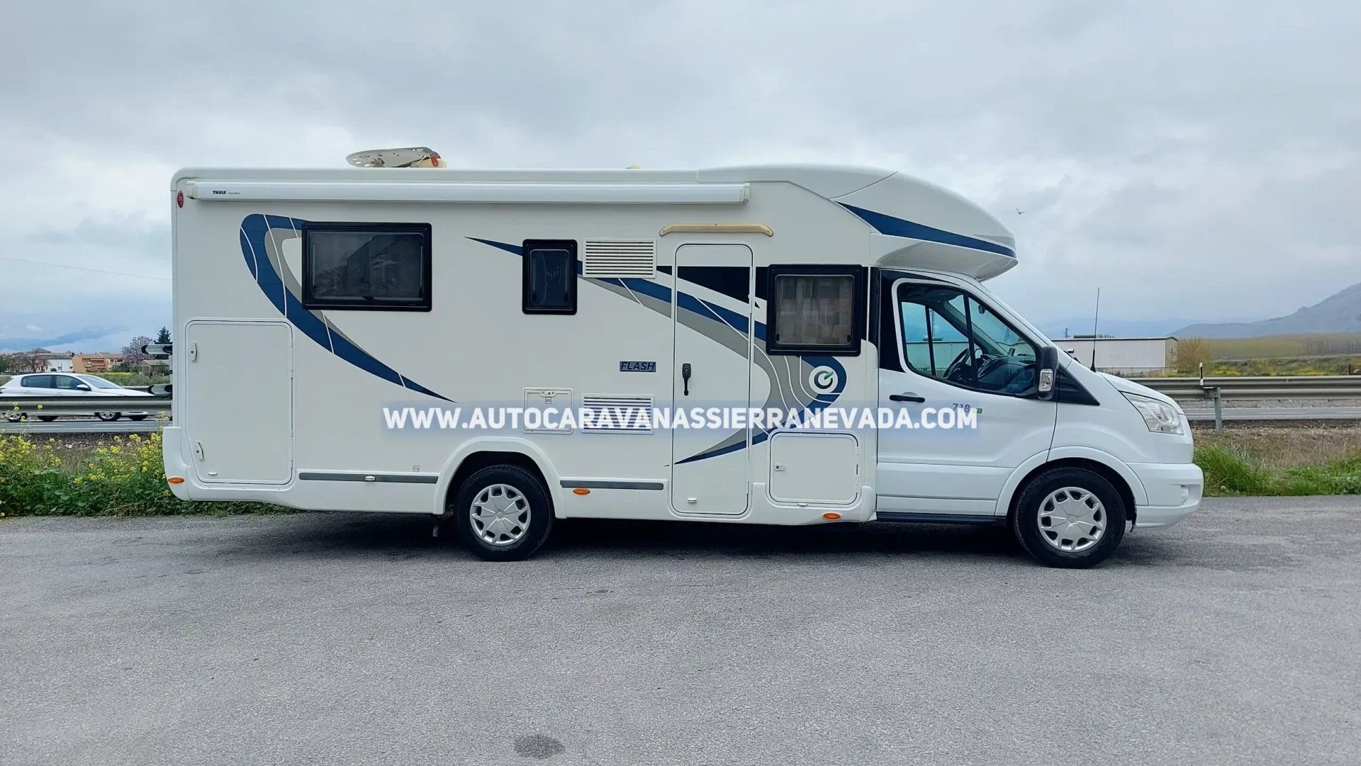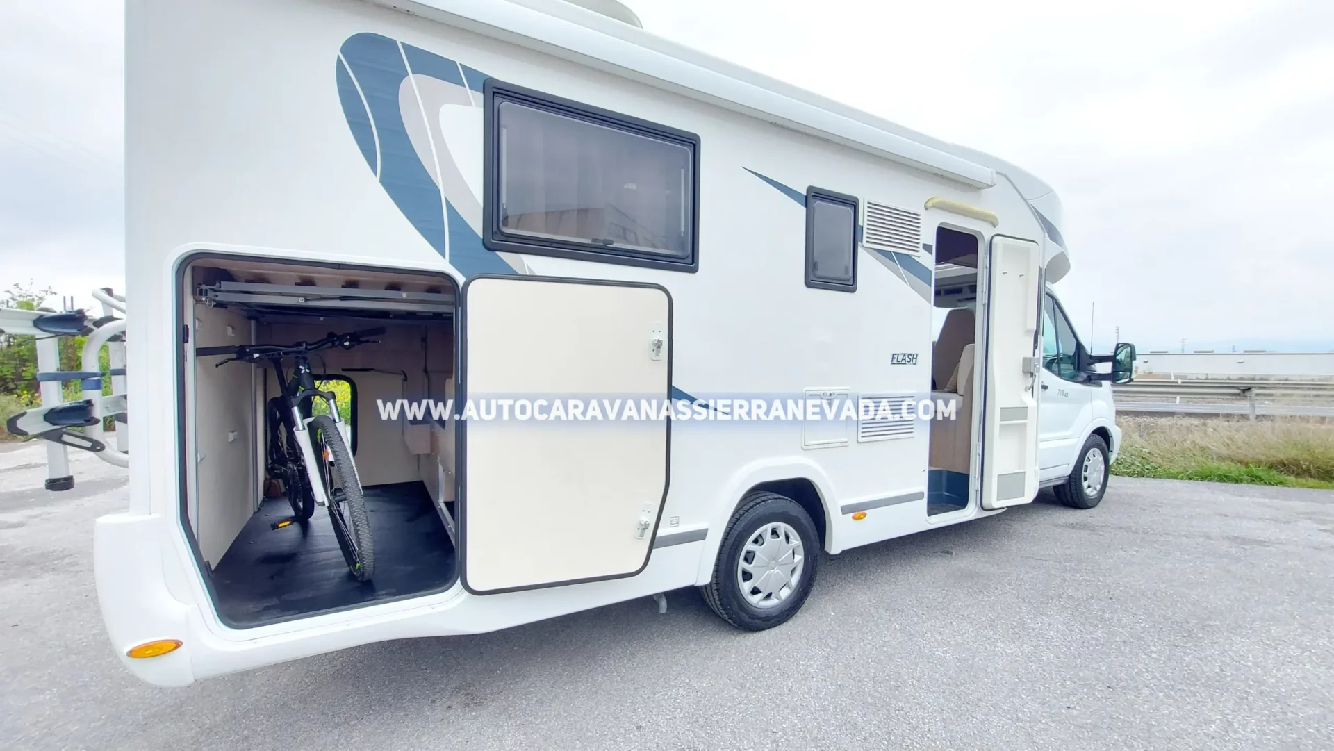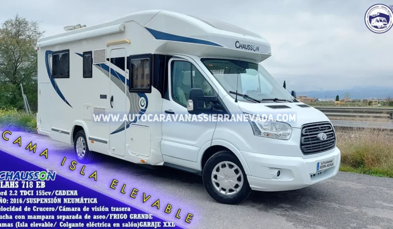Autocaravana Perfilada CHAUSSON, modelo FLASH 718 EB un modelo exclusivo, de muy alta gama y con unos materiales y acabados dignos de este modelo .Una de las marcas más valoradas del mercado. Muy cuidada. Dispone de una claraboya panorámica en cabina muy amplia, por donde le entra mucha claridad dándole una sensación de amplitud y mucha ventilación. Con un motor Ford 2.2 TDCI 155cv con Cadena de distribución,muy duro, potente y de fácil mantenimiento. Con SUSPENSIÓN NEUMÁTICA con autoinflado desde cabina. Del año 2016 con tan solo 36.000km, procedente de particular, no proviene de alquiler, mucho mejor que comprarla nueva ya que el impuesto de matriculación (muy elevado) y el IVA está incluido en este precio. Dispone de 4 plazas homologadas en documentación para viajar y dormir. Sus camas: Cama Isla elevable en la parte trasera con acceso a maletero, por lo cual nos  permitirá meter bicicletas y motos, en su punto más elevado. Uno de los modelo más selecto, ideal para parejas, la facilidad y comodidad a la hora de hacerla y levantarse de ella, hace que sea el modelo de cama más demandado por nuestros clientes + Colgante en salón. Muy espaciosa en su interior debido a sus medidas exteriores: (7,50m x 2,90m) perfecta para hacer largos viajes o vivir en ella. Con un Maletero Trasero doble portón XXL: (2,15m x 0,90m x 1,20m), donde podrá llevar bicicletas o moto scooter.
