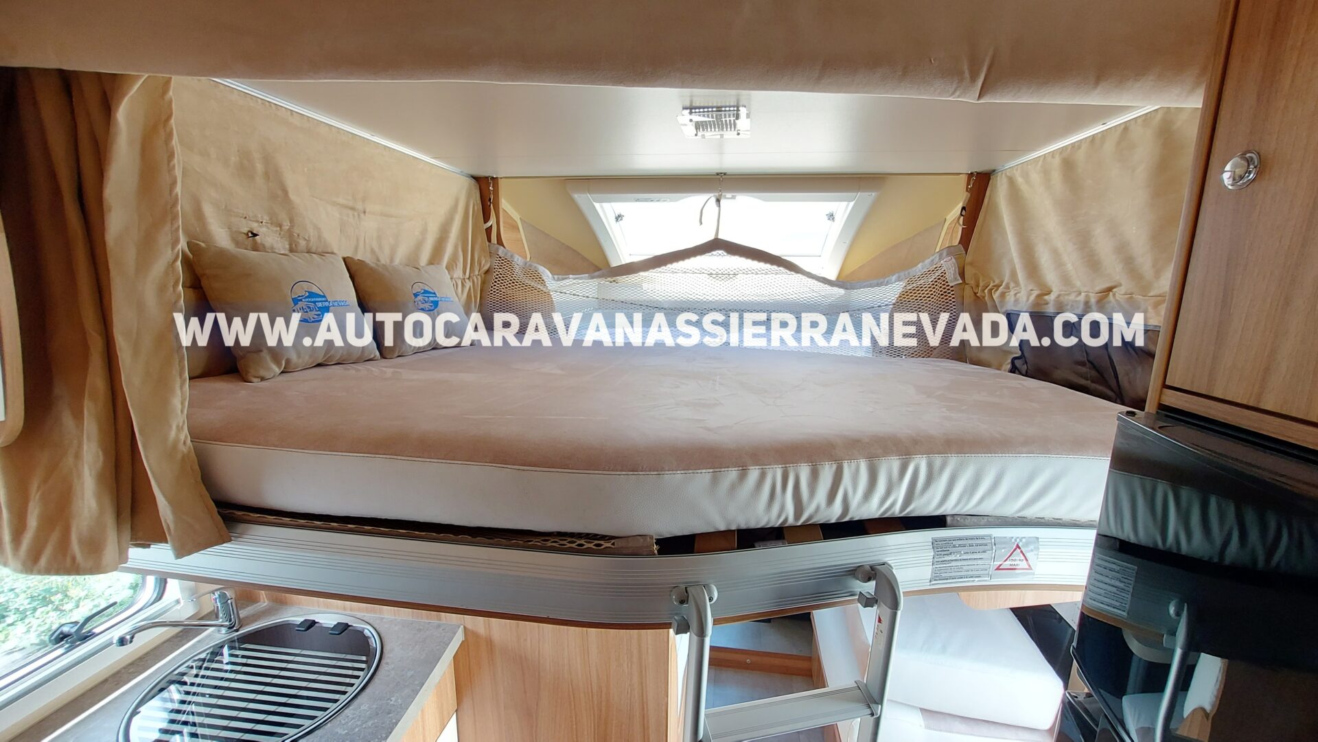 Aire acondicionado (de motor), AirBag (conductor y copiloto), Velocidad de crucero, Cierre centralizado (en cabina), Espejos eléctricos, Elevalunas eléctricos, Radio (CD-AUX), Cámara de visión trasera, Asientos giratorios, Mosquiteras en ventanas y claraboyas, Claraboyas transparentes y Claraboya panorámica XXL en cabina, Frigo THETFORD  (220v, Gas, 12v, Auto) 175L capacidad, Ducha con mampara separada de aseo, Batería de 100ah., Placa solar de 100w., Calefacción Truma (a gasoil), Tv 12v. (HDMI-USB-DVD), Escalón de doble peldaño integrado, Toldo THULE OMNISTOR de 4m., Escalera trasera para subir a techo, Patas estabilizadoras, Portabicis para 2, Neumáticos reforzados especial camper.