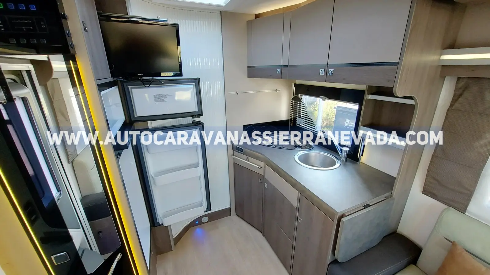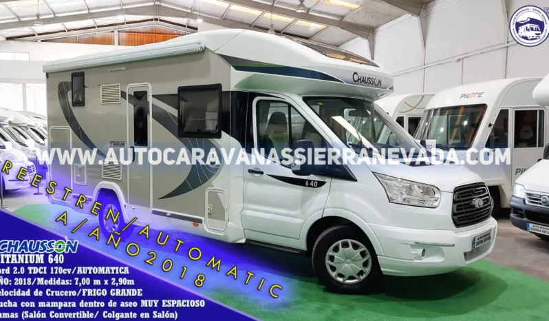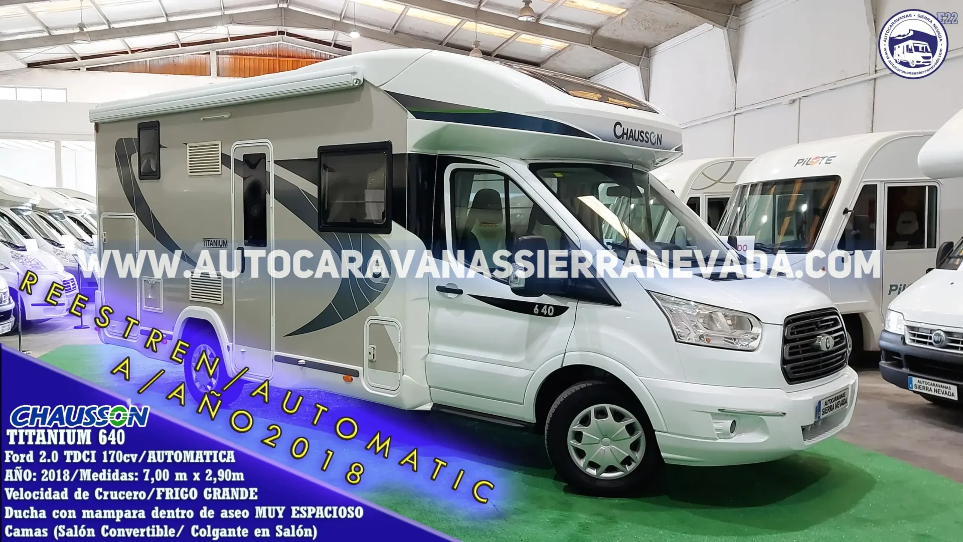 Autocaravana Perfilada de la marca Chausson, modelo TITANIUM 640. Una de las marcas más valoradas por su dureza en su construcción, durabilidad, comodidad y seguridad. Con un diseño moderno y elegante. Dispone de una claraboya panorámica en cabina muy amplia, por donde le entra mucha claridad dándole una sensación de amplitud y mucha ventilación. Con un comedor FACE TO FACE espacioso y acogedor. Del año 2018 con tan solo 42.000km,prácticamente a estrenar, procedente de particular. Con motor, Ford 2.0 TDCI 170cv con Cadena de distribución, CAMBIO AUTOMATICO, muy duro, potente y de fácil mantenimiento. La autocaravana, al ser de tamaño reducido y ligera, mantiene muy bien una velocidad constante de 140km/h, incluso subiendo puertos de montaña a 100km/h sin cambiar de marcha y haciendo un bajo consumo gracias a su perfil aerodinámico. Consta de un boiler TRUMA para agua caliente + Calefacción de gasoil WEBASTO. Con 4 plazas homologadas en documentación para viajar y dormir gracias a sus siguientes camas: Colgante eléctrica en salón + Salón convertible muy amplia y cómoda de hacer gracias a su mesa eléctrica. Dispone de un garaje con doble portón de unas medidas: (2,20 largo x 0,80 ancho x 1,25 alto). Ideal para gente que quiere una autocaravana muy cómoda de llevar y entrar en aparcamientos reducidos, se conduce igual que un turismo, Medidas: (7,00m x 2,90m). Consta de un baño trasero muy amplio, con un grandísimo vestidor encima de la bodega que ocupa el ancho del vehículo.