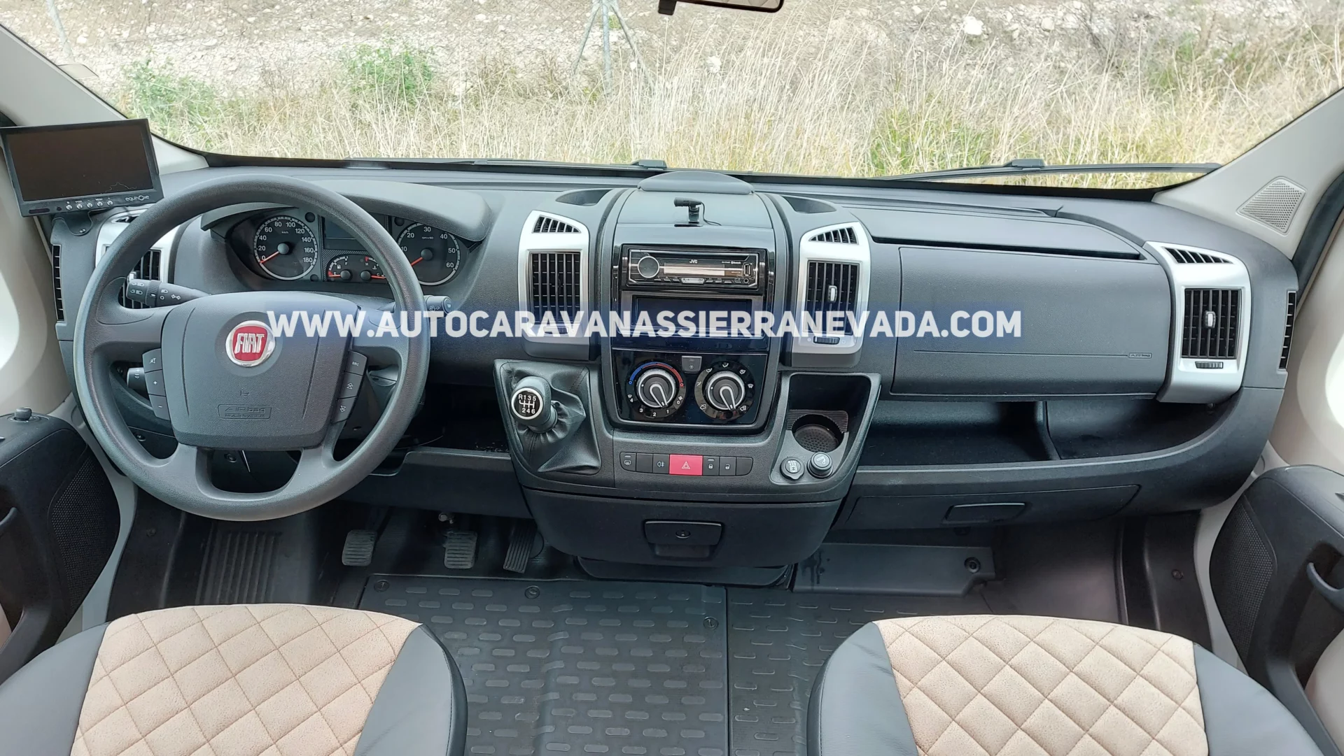 Aire acondicionado (de motor), AirBag (conductor y copiloto), Velocidad de Crucero, Cierre centralizado (en cabina), Espejos eléctricos, Elevalunas eléctricos, Radio (CD-USB-AUX), Cámara de visión trasera, Sensores de Aparcamiento, Asientos giratorios, Mosquiteras en ventanas y claraboyas, Claraboyas transparentes, Claraboya XXL en cocina y Claraboya panorámica XXL en cabina, Turbovent (en dormitorio), Frigo DOMETIC (220v, Gas, 12v, Auto) 150L capacidad, Ducha con mampara separada de aseo, Batería de 100ah., Placa solar de 80w., Calefacción TRUMA Combi a gasoil, Herramientas y Rueda de repuesto, Escalón de doble peldaño integrado, Toldo FIAMMA  de 3,5m., Portabicis para 4, Neumáticos reforzados marca MICHELIN especial camper.
