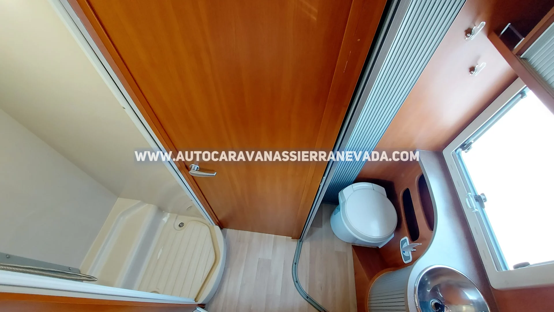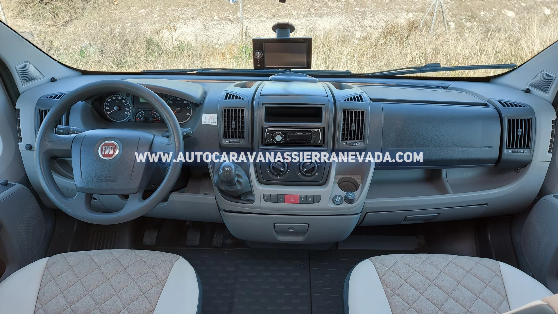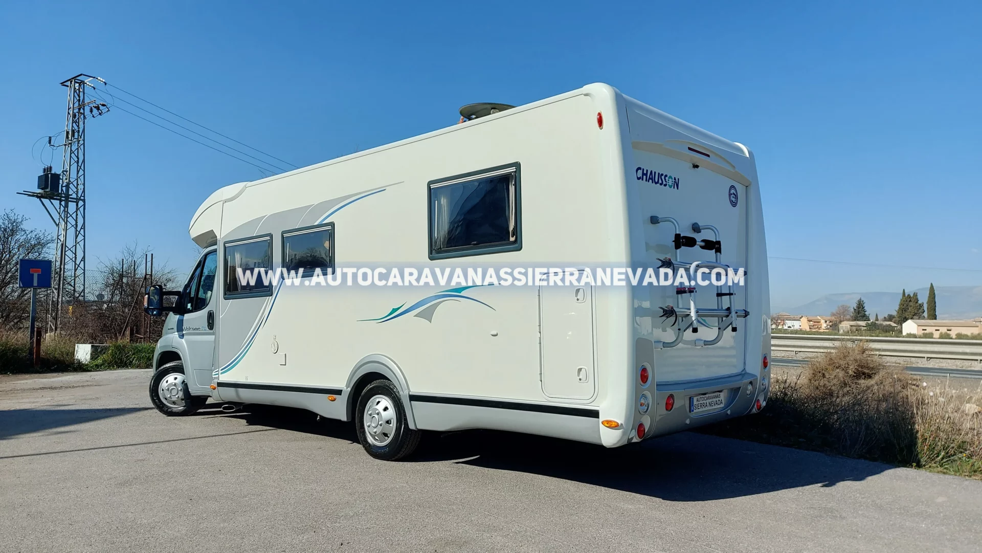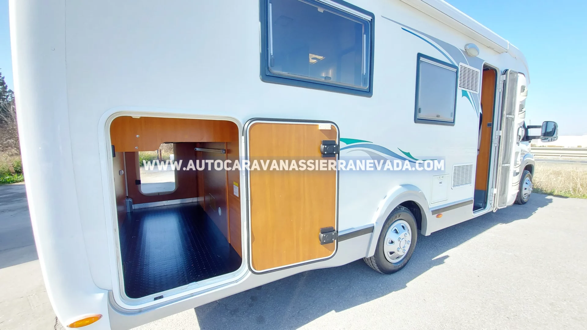 Autocaravana Perfilada CHAUSSON. Welcome 78 es el modelo de alta gama de esta marca, la característica que destaca es su grosor en el techo y paredes, siendo más grueso de lo normal, protegiendo el interior de temperaturas extremas. Dispone de una claraboya panorámica en cabina muy amplia, por donde le entra mucha claridad dándole una sensación de amplitud y mucha ventilación. Consta de un TurboVent en dormitorio, y calefacción + agua caliente estacionaria de gasoil WEBASTO. Del año 2010 y con tan solo 64.000km, procedente de particular, muy cuidada y con poco uso. Un motor Fiat Ducato 2.3 MultiJet 130cv motor muy duro y de fácil mantenimiento. Un vehículo súper espacioso, perfecto para usar como vivienda o viajes largos, gracias a sus medidas (7,40m x 2,90m). Homologada para viajar 4 personas. Con 2 camas: (Salón convertible para 2 personas y cama isla en la parte trasera con grandes huecos de almacenaje. Dispone de una gran Bodega con doble portón XXL, sus medidas: (2,25m x 0,80m x 1,00m).