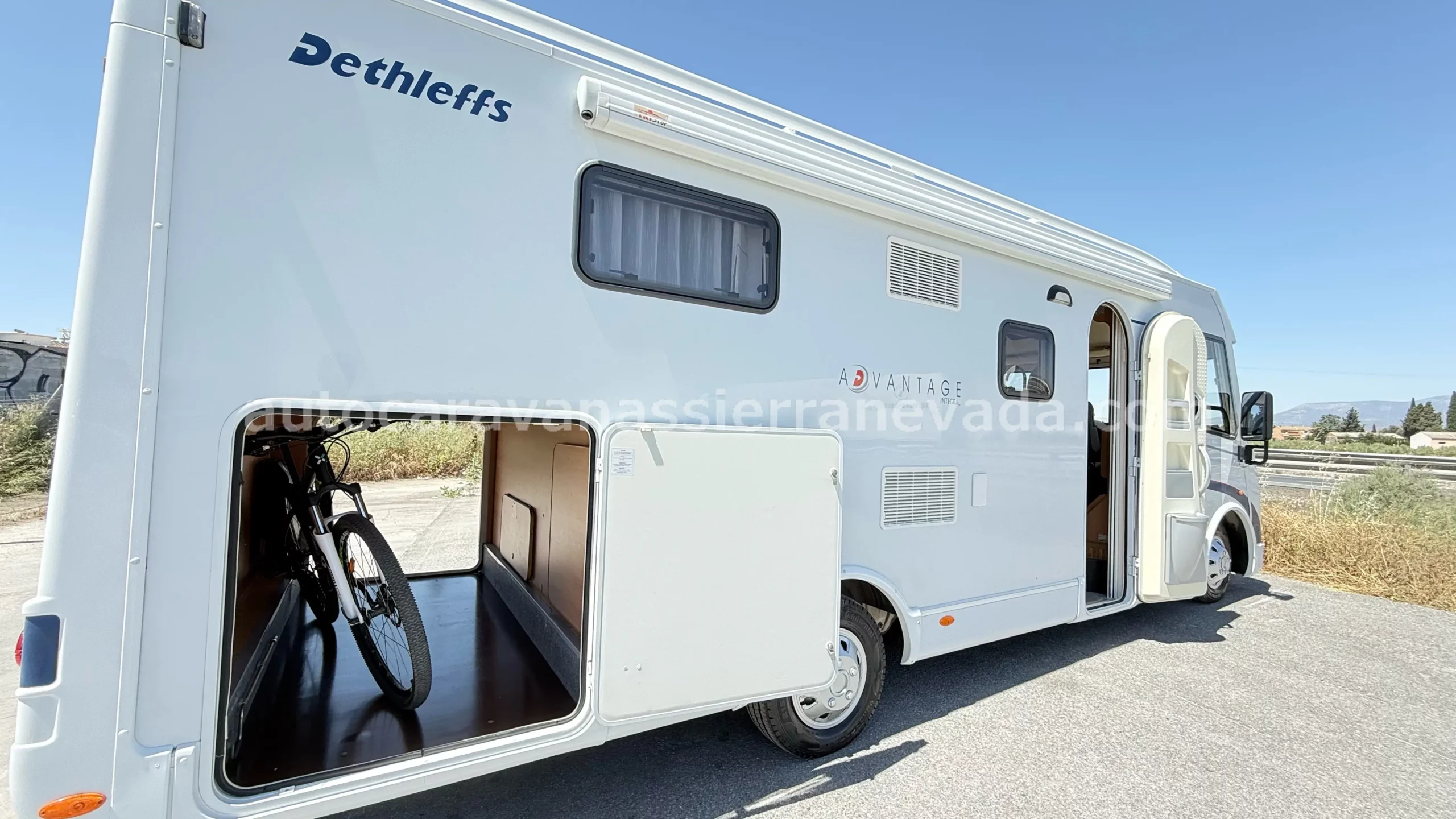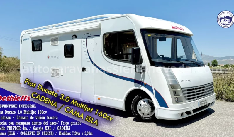 Autocaravana integral DETHLEFFS, modelo ADVANTAGE INTRGRAL una de las marcas más valoradas del mercado, con unos excelentes acabados, diseños elegantes y gran calidad en sus muebles. Calidad “Made in Germany”. De las primeras marcas y pioneras en este modelo de construcción, de gran calidad. Año 2007 y con 96.000km, procedente de particular.Con un motor Fiat Ducato 3.0MultiJet 160cv muy potente con CADENA DE DISTRIBUCIÓNy de fácil mantenimiento, seis velocidades. Homologada para 4 personas para viajar y dormir, gracias a sus camas: COLGANTE en cabina y cama ISLAen la parte trasera, ambas muy amplias. Dispone de un amplio garaje con doble portón con unas medidas: (2,20m x 1,15m x 1,05m). Gracias a su interior tan espacioso, esta increíble autocaravana es ideal para hacer grandes viajes dadas sus medidas:(7,20m x 2,90m).