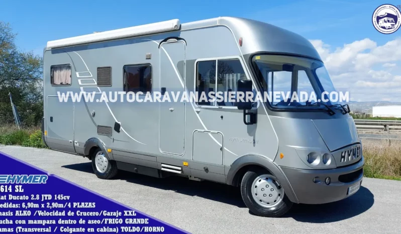 Autocaravana integral Hymer, modelo B 614 SL. La mejor marca del mercado y pionera en este tipo de construcciones, con terminaciones y acabados de máxima calidad muy propios de esta marca alemana. Del Año 2006 y con 75.000km. Motor Fiat Ducato 2.8 JTD 145cv, muy potente y de fácil mantenimiento. Con Chasis ALKO con doble suelo y Suspensión con barras de torsión (mucho mejor que la suspensión de ballestas). Cuenta con 4 plazas homologadas en documentación para viajar y dormir gracias a sus camas: Colgante en cabina y Transversal en la parte trasera. Dispone de un garaje con doble puerta GIGANTE perfecto para motos y bicicletas con unas medidas: (1,90 largo x 1,50 ancho x 1,20 alto). Muy bien distribuida y con unas medidas no excesivamente grandes, ideal para gente que quiere una autocaravana muy cómoda de llevar y entrar en aparcamientos reducidos, se conduce igual que un turismo (6,90m x 2,90m), otra ventaja de la medida es su bajo consumo y la fuerza en subidas al pesar menos que otras de mayores dimensiones.