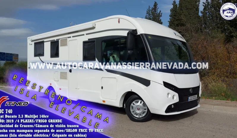 Autocaravana integral de la marca ITINEO, modelo TC740. Del grupo RAPIDO, su diseño es muy moderno e innovador, muy valorada por sus terminaciones, diseño y dureza en su construcción y durabilidad. Del Año 2019 y con tan solo 38.000 km. Poco usada y muy bien tratada, prácticamente a estrenar, procedente de particular. Con amplio y cómodo SALON FACE TO FACE. Con motor Fiat Ducato 2.3 MultiJet 140cv y 6 velocidades un motor muy potente y de fácil mantenimiento. Con 4 plazas homologadas en documentación para viajar y dormir. Dispone de Cama Isla elevable doble en la con huecos de almacenaje y Cama colgante en la zona de cabina, dejando el salón totalmente utilizable. Autocaravana super espaciosa, ideal para usar como vivienda o viajes largos, medidas: (7,40m x 2,90m). Dispone de un maletero xxl doble portón con unas medidas: (2,20largo x 1,10ancho x 1,15alto).