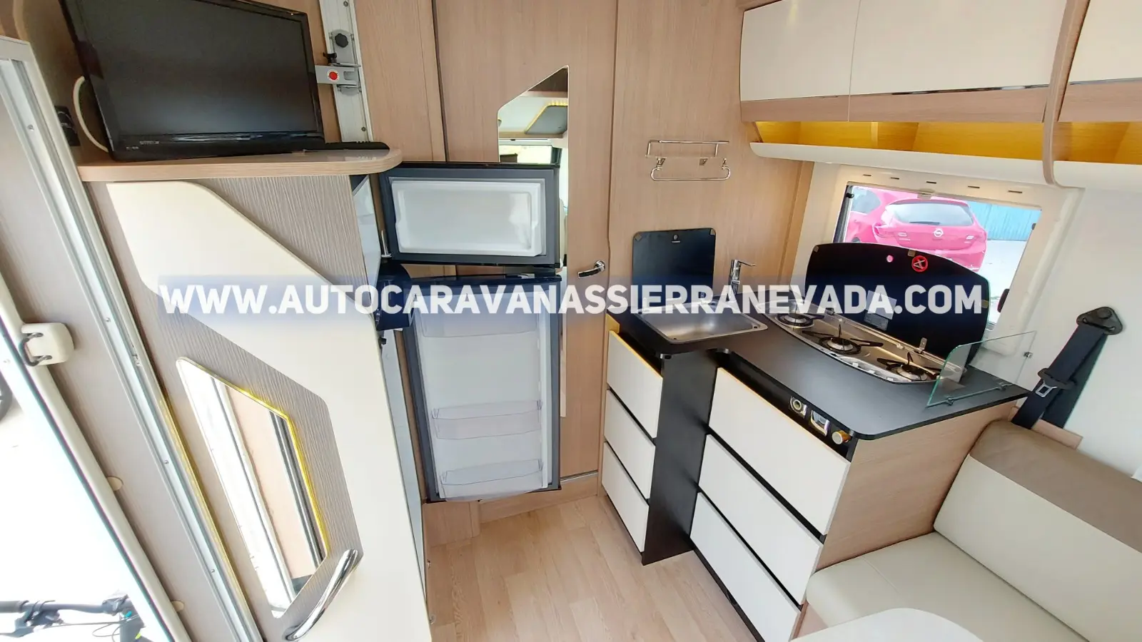 Aire acondicionado(de motor), AirBag(conductor y copiloto), Velocidad de Crucero Cierre centralizado, Espejos eléctricos, Elevalunas eléctricos(conductor), Radio (CD-MP3-AUX-BT), Cámara de visión trasera,   Asientos  giratorios,  Mosquiteras en ventanas, claraboyas y puerta principal,  Claraboyas transparentes y Claraboya xxl en salón, Frigo THETFORD (220v, Gas, 12v, Auto) 150L capacidad, Ducha con mampara separada de aseo, Batería de 100ah., Placa solar de 100w., Calefacción Truma Combi, Herramientas + Rueda de repuesto, Tv 12v. (TDT-HDMI-USB-DVD) + Antena TDT OMNIDIRECCIONAL, Escalón de doble peldaño integrado, Toldo THULE OMNISTOR de 4m., Portabicis para 4, Neumáticos reforzados marca CONTINENTAL especial camper
