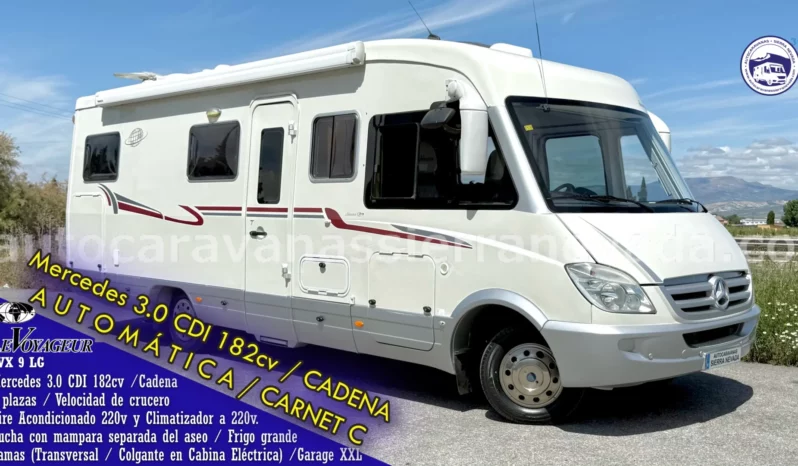 Autocaravana integral marca LEVOYAGEUR, modelo LVX 9LG fabricante francés dedicados a hacer autocaranas de alta gama, modelo Serie 7 y del grupo PILOTE. Estos vehículos destacan por varios puntos uno de los más importantes son sus aislantes de 35mm. Diseño elegante, moderno, construcción, acabados y muebles de altas calidades. Sus llantas son de aluminio original Mercedes. Un vehículo perfecto y preparado tanto para el invierno como para el verano. Del año 2008, con 137.000km. Con un motor muy duro y potente, Mercedes 3.0 CDI 182cv AUTOMATICA, con Cadena de distribución. Un vehículo con muchísima estabilidad gracias a sus ruedas gemelas traseras, con ballestas reforzadas y amortiguador cruzado, esto también incrementa la seguridad en caso de un reventón al disponer de sus 4 ruedas. Con 4 plazas homologadas para viajar ydormir. Con cama Transversal con acceso al garaje en la parte trasera y Colgante eléctrica en Cabina, muy amplia, más de lo habitual. Se conduce con carnet C, su M.M.A 5.000kg la mayor ventaja es su capacidad de carga. Una gran autocaravana muy amplia, para hacer grandes viajes o incluso vivir en ella gracias a sus medidas:(7,80m x 3,10m).Dispone un garaje con doble portón muy espacioso donde podrá llevar bicicletas, con unas medidas (2,25 largo x 1,20 ancho x 1,15 alto) y dos maleteros laterales de gran capacidad. Este vehículo dispone de un Aire Acondicionado a 220v y un climatizador a 220v.