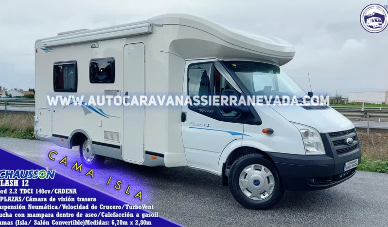 Autocaravana Perfilada de la marca Chausson, modelo FLASH 12. Una de las marcas más valoradas por su dureza en su construcción, durabilidad, comodidad y seguridad. Con un diseño moderno y elegante. Del año 2009 con tan solo 20.000km, procedente de particular. Con motor, Ford 2.2 TDCI 140cv con Cadena de distribución, muy duro, potente y de fácil mantenimiento. Con SUSPENSION NEUMATICA. Consta de un boiler TRUMA + calefacción para agua caliente de gasoil WEBASTO. Con 4 plazas homologadas en documentación para viajar y dormir gracias a sus siguientes camas: Salon convertible y Isla, este tipo de cama le proporciona una gran comodidad en todos los aspectos, tanto al hacerla como acostarse por ambos lados e incluso no molestar al otro al levantarse, además de conseguir un diseño muy selecto y cotizado en su interior. Dispone de un garaje muy espacioso, con unas medidas: (2,15 largo x 0,80 ancho x 0,65 alto). Un vehículo ideal para gente que quiere una autocaravana muy cómoda de llevar y entrar en aparcamientos reducidos, se conduce igual que un turismo, Medidas: (6,70m x 2,80m).