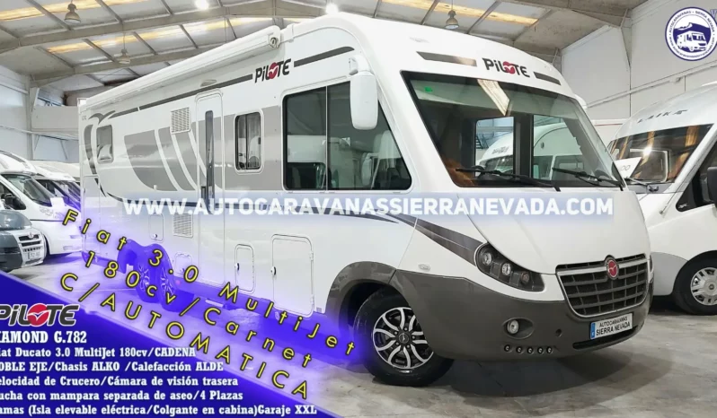 Autocaravana Integral PILOTE, modelo DIAMOND G.782 , esta marca está situada en el mercado entre una de las mejores de Europa, un vehículo de extrema calidad, perfecta para vivir en ella, aportando un gran aislamiento para climas tanto fríos como de mucho calor. Con un diseño moderno, con acabados y muebles de alta calidad.Vehículo preparado para zonas muy frías gracias a su construcción monocasco que le aportara un gran aislamiento. Con ventanas de máxima calidad con marco de aluminio que le evitara ruido en circulación al ir la ventana embutida en el marco, remis el los laterales(conductor y copiloto) y persiana eléctrica en la luna. Año 2014(MODELO 2015) con 67.000km y toda su documentación que los certifican. Con un motor muy potente Fiat Ducato 3.0 MultiJet 180cv y CAMBIO AUTOMÁTICO, súper potente, robusto, fiable y lo mejor de todo con CADENA DE DISTRIBUCIÓN. Ventajas de su doble eje trasero y su Chasis Alko: proporciona una gran estabilidad, mejor reparto de peso, más freno y la seguridad ante un incidente como el reventón de una rueda. Es una autentica casa con ruedas, con un espectacular salón muy espacioso y super cómodo, igualmente su concina extra grande, perfecta para vivir en ella por su gran longitud y espacio con unas medidas. Se conduce con carnet C, M.M.A 5.000kg la mayor ventaja es su capacidad de carga. La calefacción y el agua caliente funcionan mediante caldera ALDE, insonora y de radiadores como en casa + Trumatic E ,para calentar el habitáculo mucho más rápido. Cuenta con 4 plazas homologadas para viajar y con 2 camas: Isla elevable eléctrica y cama Colgante sobre cabina. Con un garaje doble portón xxl con unas medidas (2,15m x 1,00m x 1,30m) .Las medidas de esta fantástica autocaravana son (8,00m x 2,90m) perfecta para hacer largos viajes o vivir en ella. Dispone de unas exclusivas llantas bicolor.