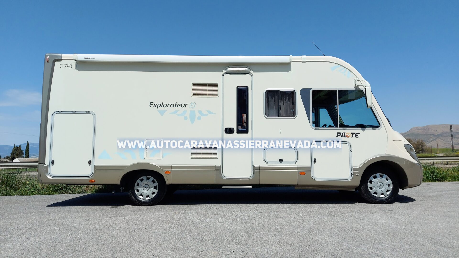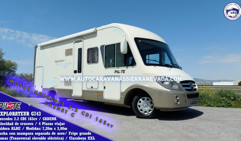 Autocaravana Integral PILOTE, modelo EXPLORATEUR G743, esta marca, está situada en el mercado entre una de las mejores de Europa, similar a Hymer, Burstner o Dethleffs entre otras, un vehículo de extrema calidad, perfecta para vivir en ella, aportando un gran aislamiento para climas tanto fríos como de mucho calor. Año 2010 con 85.000km y procedente de particular. Motor MERCEDES 2.2 CDI 163cv, super potente, robusto, fiable. Con cadena de distribución (no lleva correa). Dispone de 4 plazas homologadas para viajar y 2 dormir ya que dispone de una sola y amplia cama Transversal en la parte trasera. Gran garaje con doble portón, sus medidas son: (2,20m x 1,00m x 1,25m) donde podrá llevar moto scooter o varias bicicletas. Perfecta para hacer largos viajes o vivir en ella gracias a sus medidas: (7,20m x 3,00m). Este vehículo se conduce con CARNET C. y su M.M.A 3.880kg la mayor ventaja es su capacidad de carga
