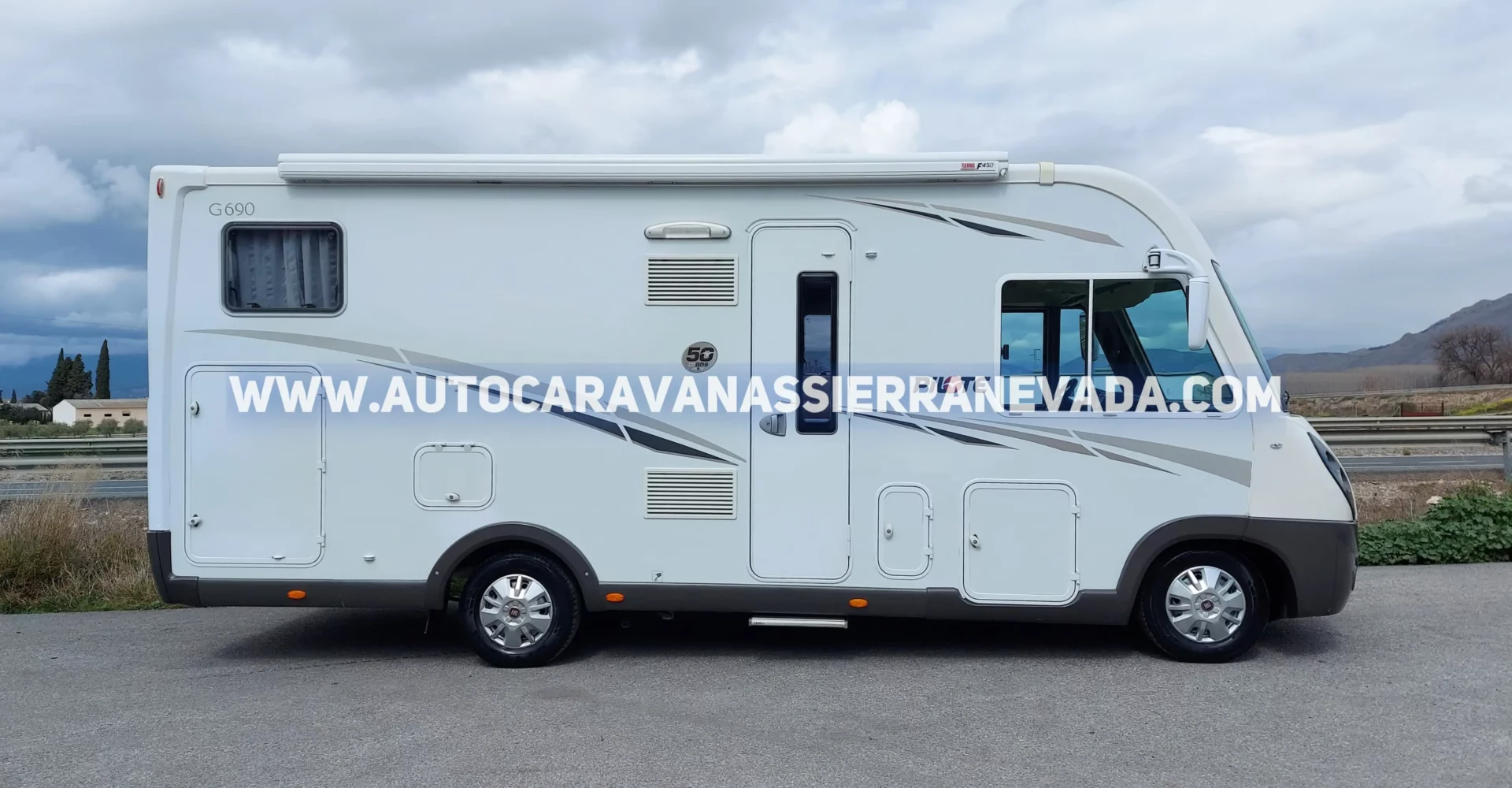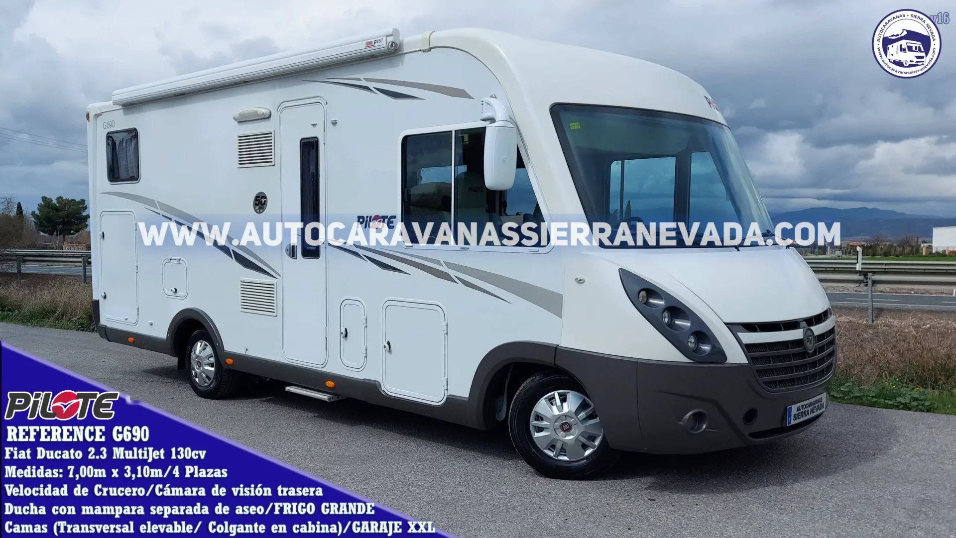 Autocaravana Integral PILOTE, modelo Reference G690., esta marca está situada en el mercado entre una de las mejores de Europa, un vehículo de extrema calidad, perfecta para vivir en ella, aportando un gran aislamiento para climas tanto fríos como de mucho calor. Con un diseño moderno, con acabados y muebles de alta calidad. Con 4 plazas homologadas para viajar y dormir gracias a sus camas Cama Transversal elevable y colgante en cabina ambas muy cómodas. Del año 2013, con todo el historial de facturas y revisiones que certifican los 129.000km.Con un Motor Fiat Ducato 2.3 MultiJet 130cv y 6 velocidades, muy duro y de fácil mantenimiento. Cuenta con una distribución muy conseguida y muy amplia gracias a sus Medidas: (7,00m x 2,95m) ideal para grandes viajes .Con un gran maletero doble portón xxl ,sus medidas: (2,20m x 1,10m x 1,30m), donde podrá llevar moto y bicicletas.