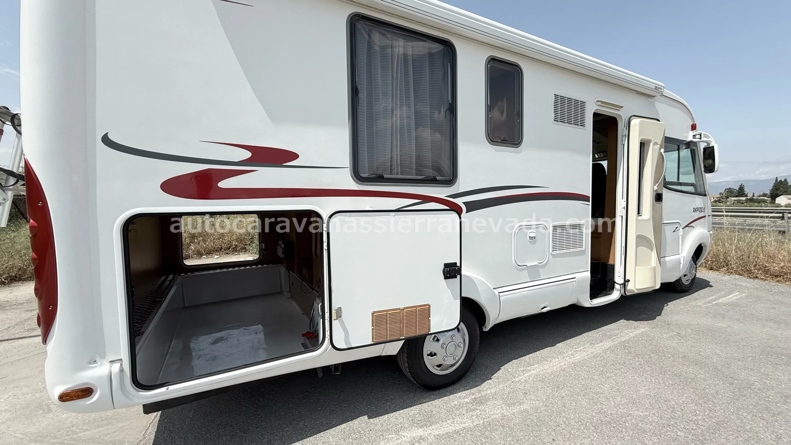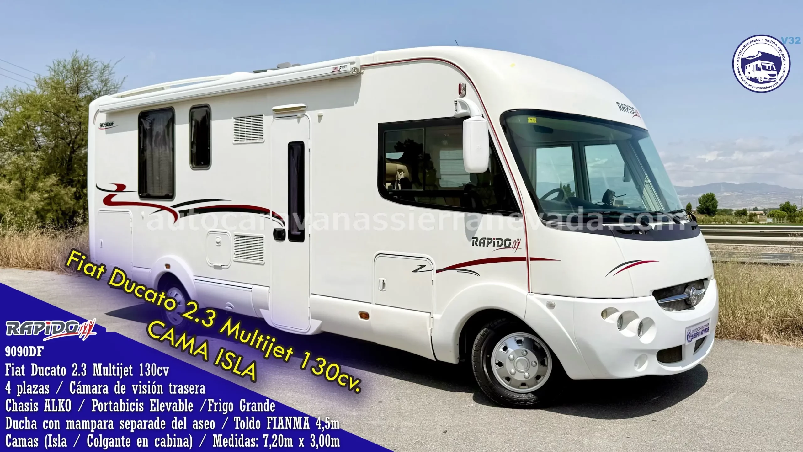 Autocaravana integral RAPIDO, modelo 9090DF, una de las marcas más valoradas del mercado por su gran calidad. Con un diseño muy selecto y cotizado en su interior gracias a su Cama isla. Esta proporciona una gran comodidad en todos los aspectos, tanto al hacerla, como acostarse por ambos lados e incluso no molestar al otro al levantarse. Con un gran motor, Fiat Ducato 2.3MultiJet 130cv y 6 velocidades, muy potente, de fácil mantenimiento. Dispone de Chasis ALKO y Suspensión con barras de torsión (proporcionando más estabilidad en carretera). Año 2010, con 89.000 kilómetros. Con 4 plazas homologadas para viajar y dormir, gracia a sus camas; isla ya mencionada y Colgante en cabina. Esta increíble autocaravana mide: (7,20m x 3,00m), muy bien distribuida y perfecta para hacer largo viajes o vivir en ella. Dispone de un gran garaje con doble portón, con unas medidas (2,20 largo x 1,20 ancho x 1,00 alto).
