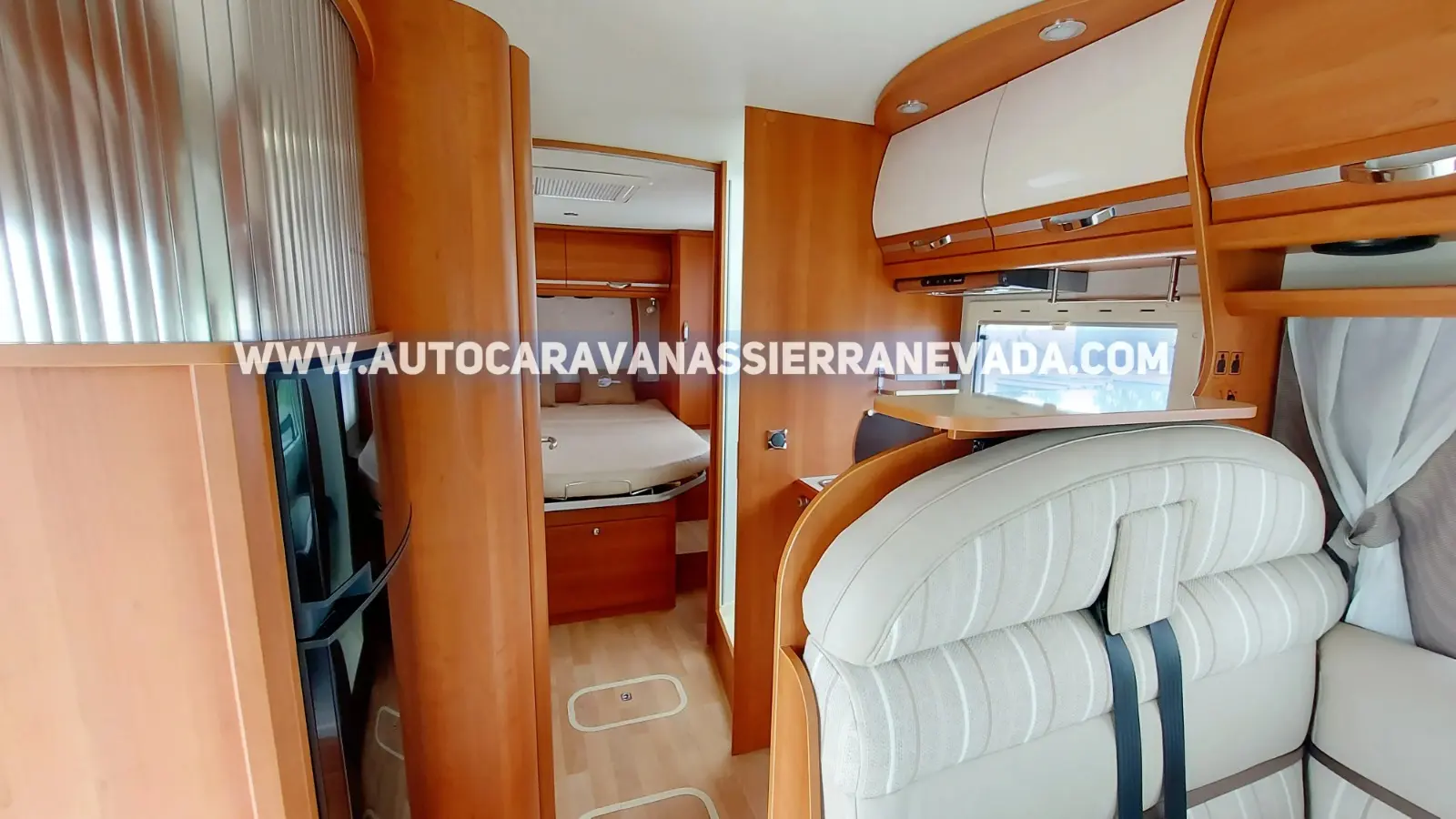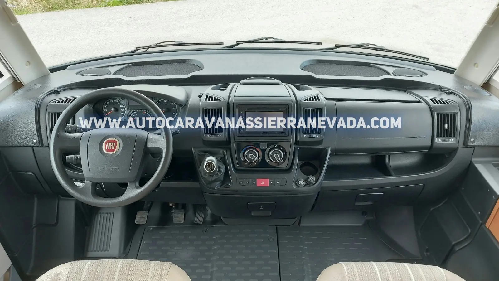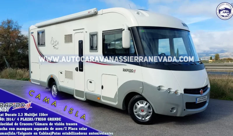 Autocaravana Integral RAPIDO, modelo 990DF, una de las marcas más valoradas del mercado por su gran calidad, estando a la altura de Hymer, Niesmann, Eura mobil entre otras. Con un gran motor, Fiat Ducato 2.3 MultiJet 150cv y 6 velocidades, muy potente, de fácil mantenimiento. Año 2014, con todo el historial de facturas y revisiones que certifican los 81.000 kilómetros carretera. Con 4 plazas para viajar y dormir, disponiendo de 2 camas dobles: Isla con grandes huecos de almacenaje y acceso al garaje en la parte trasera, este tipo de cama también le proporciona una gran comodidad en todos los aspectos, tanto al hacerla como acostarse por ambos lados e incluso no molestar al otro al levantarse, además de conseguir un diseño muy selecto y cotizado en su interior + Colgante sobre la cabina. Autocaravana espaciosa y cómoda de llevar, ideal para usar como vivienda o viajes largos gracias a sus medidas (7,40m x 2,90m).Dispone de un amplio maletero doble portón muy amplio y sus medidas son (2,20m x 1,10m x 0,90m).Este vehículo dispone de patas estabilizadoras hidráulicas autonivelantes, este sistema nos permite nivelar la autocaravana de forma automática y con mucha facilidad. Con esto nos olvidaremos de los calzos. No solamente sirven para nivelar la autocaravana sino que también te ayuda por ejemplo a poner las cadenas de nieve subiendo solamente las patas delanteras.